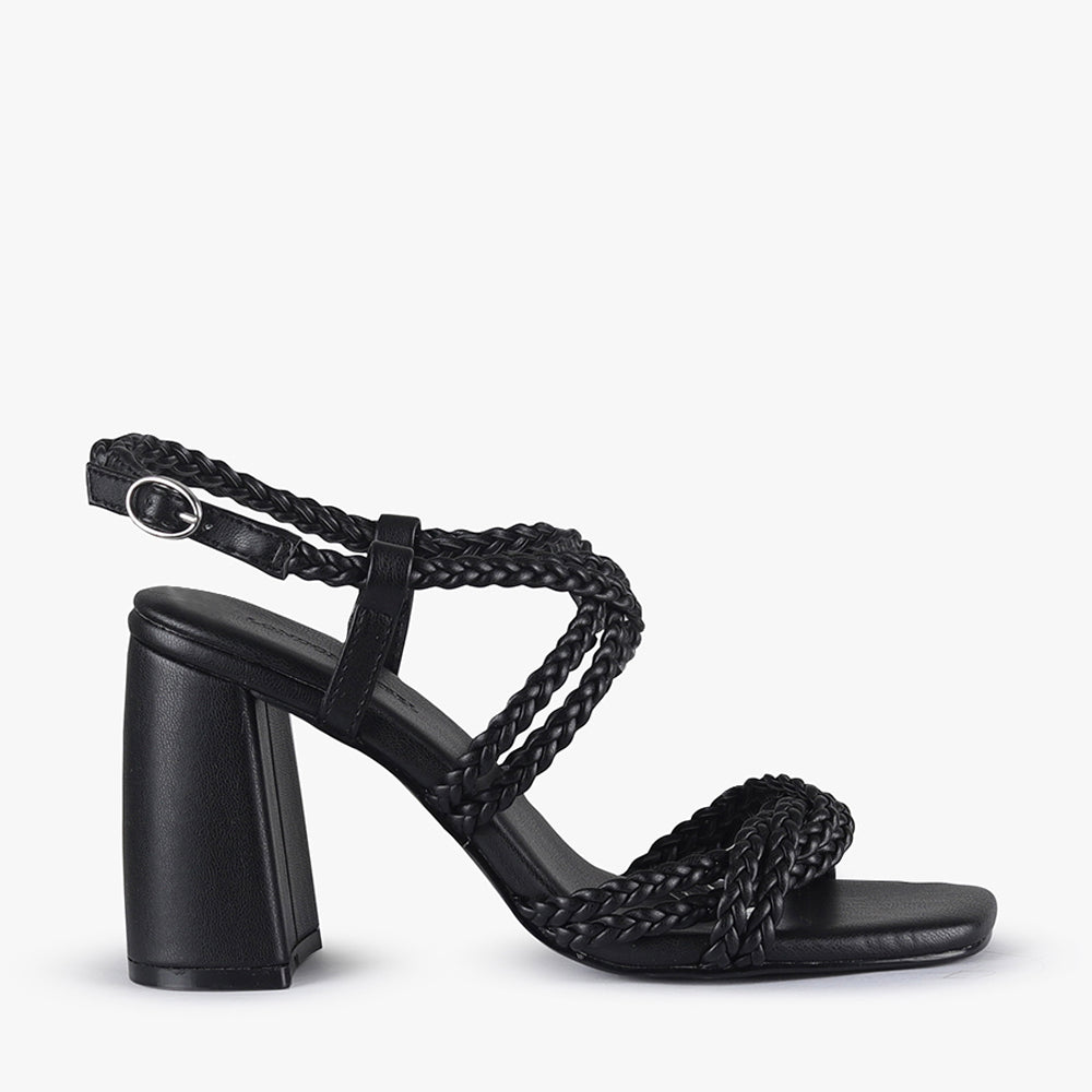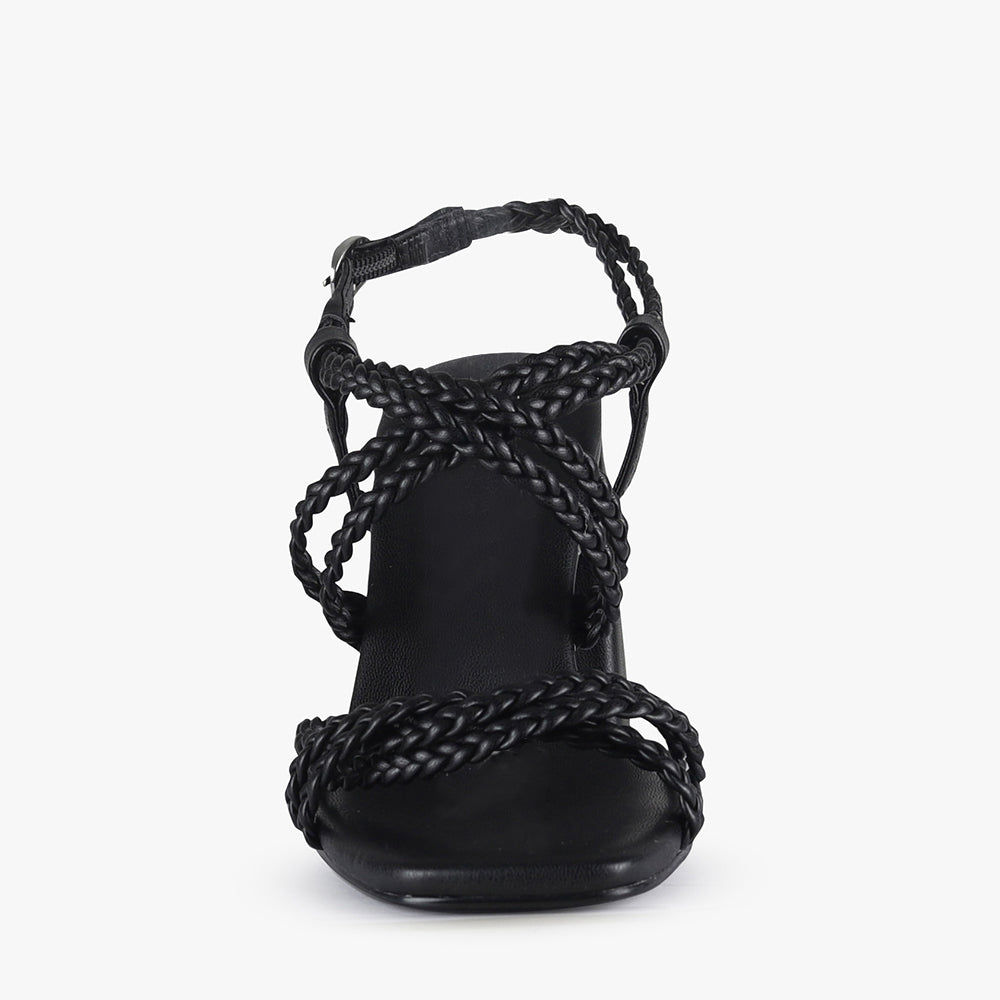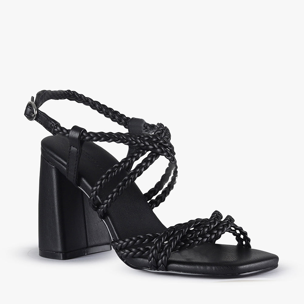 Indulge in stylish comfort with Adley, our block heel sandal featuring soft braided straps. Walk confidently in these sandals while making a statement to your outfit!