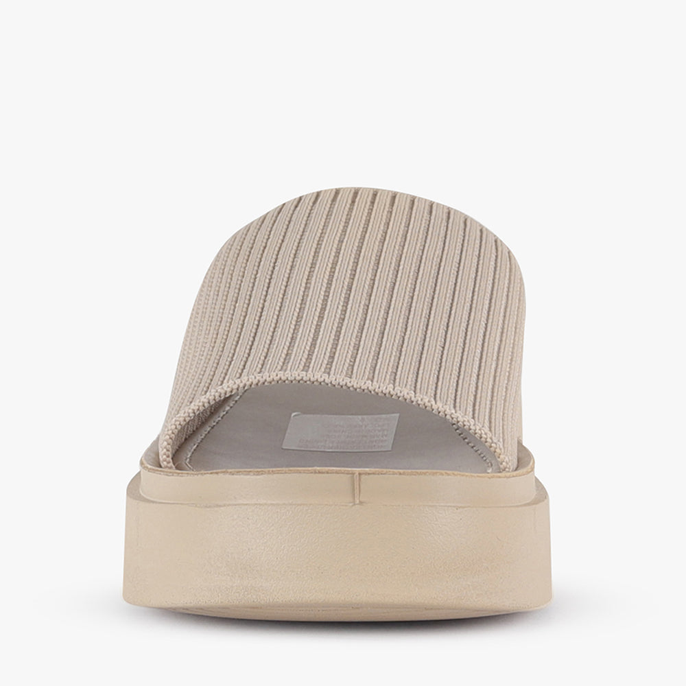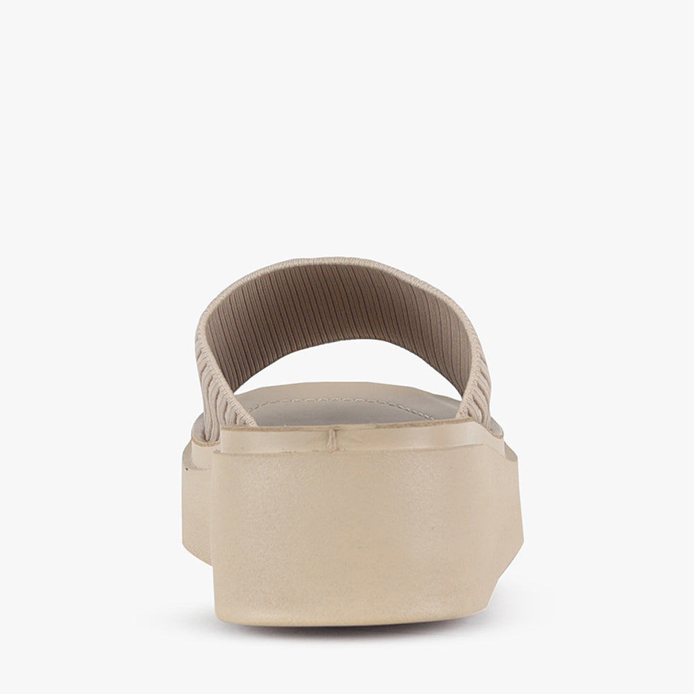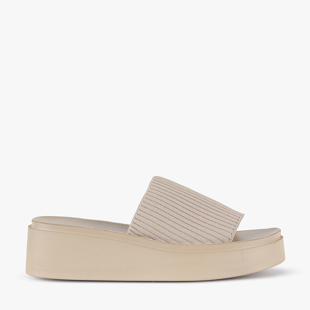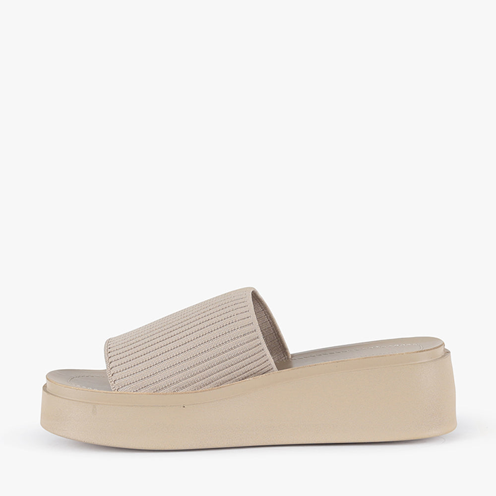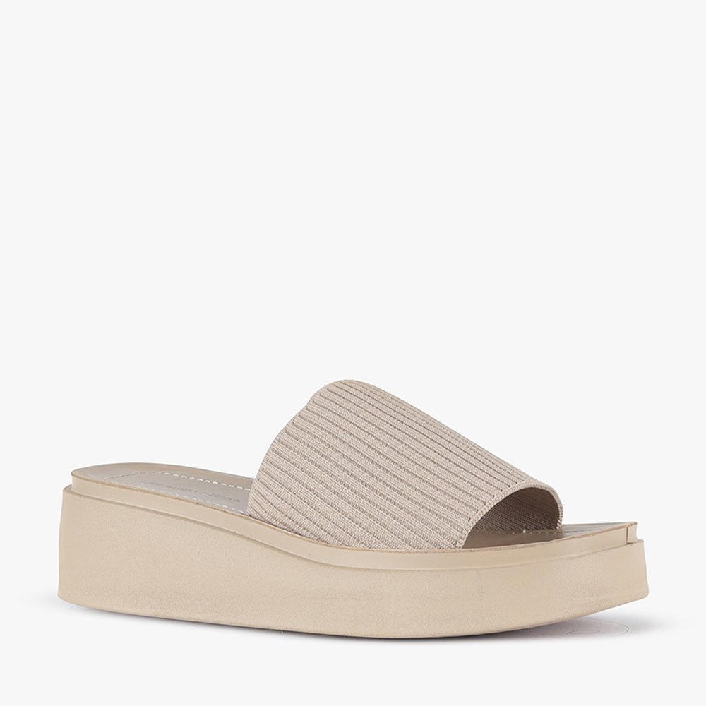 Elevate your everyday style with these slide-on-and-go platform sandals. They combine fashion and comfort featuring a stretchy ribbed fabric upper, and a perfect casual height platformed base.
