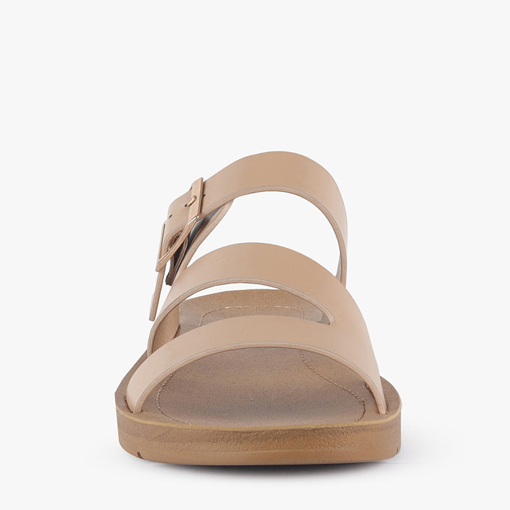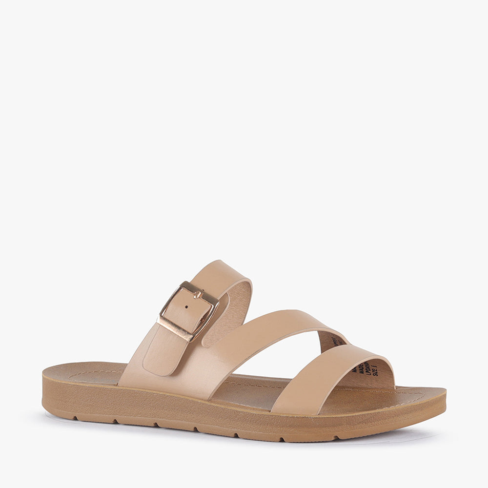 Dayoff is a flat sandal featuring asymmetrical straps and an adjustable buckle. Team these sandals with denim shorts and a basic tee for a relaxed effortless look. Cruise around in Dayoff by London Rebel.