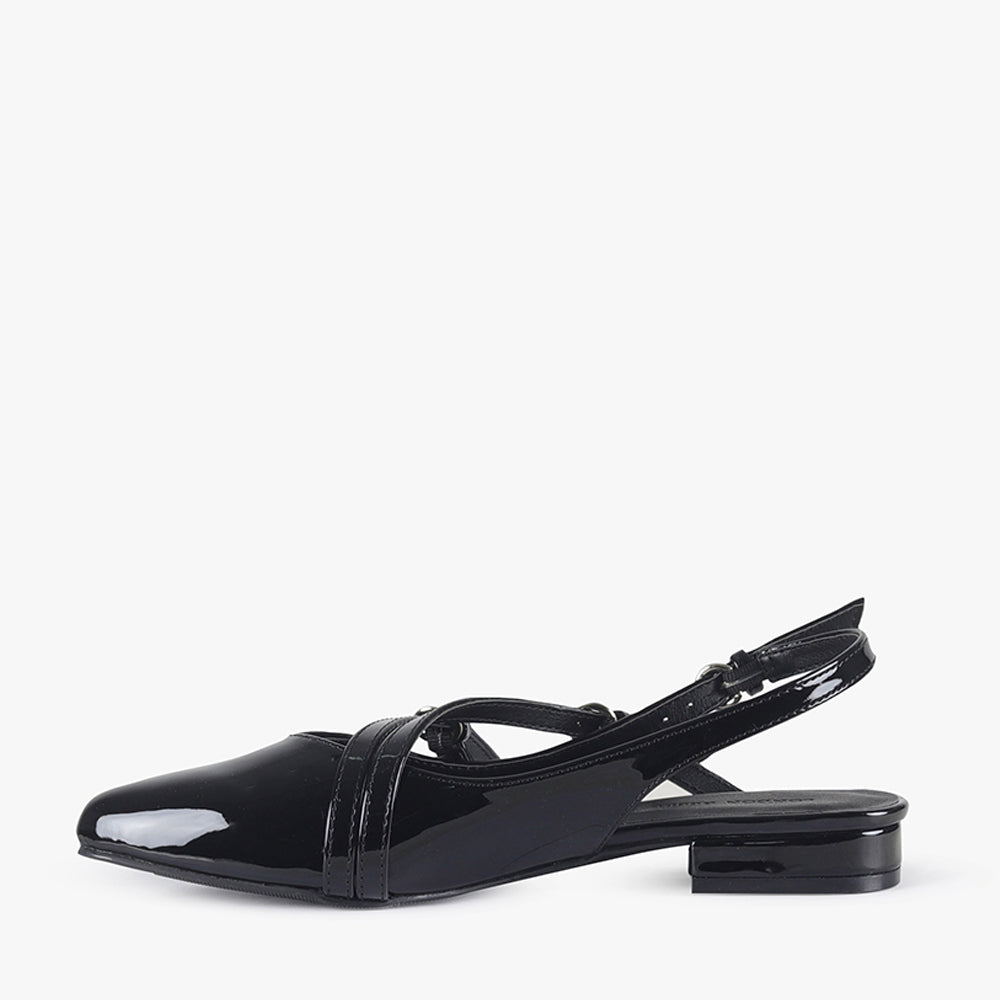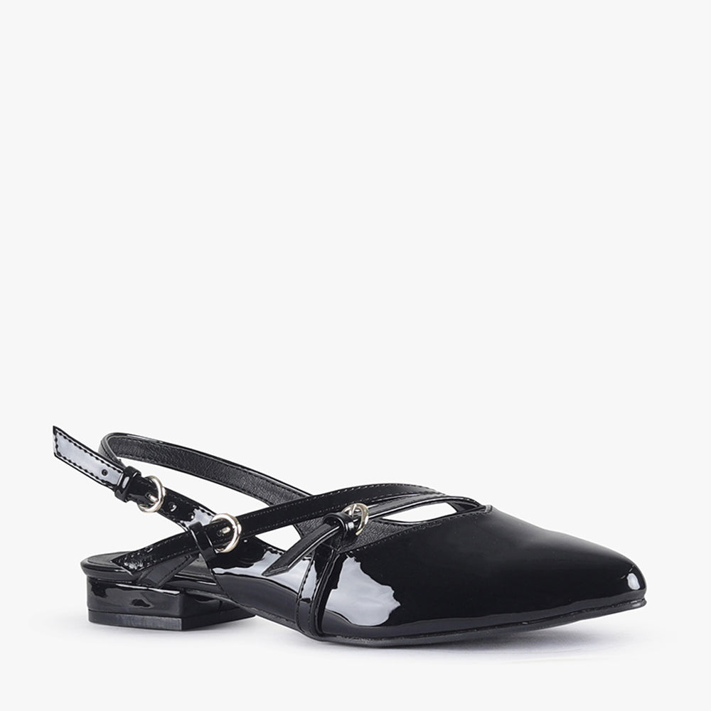 Denvah is a pointed sling-back flat.