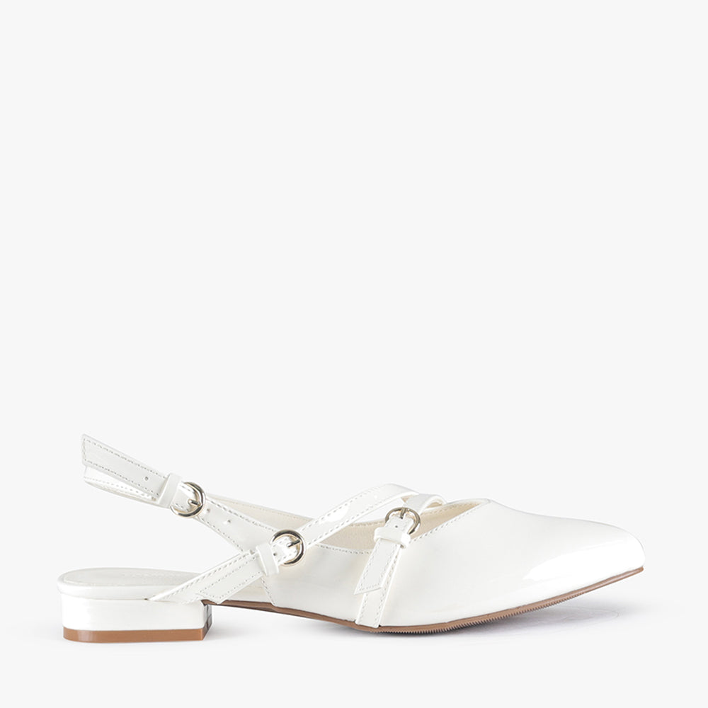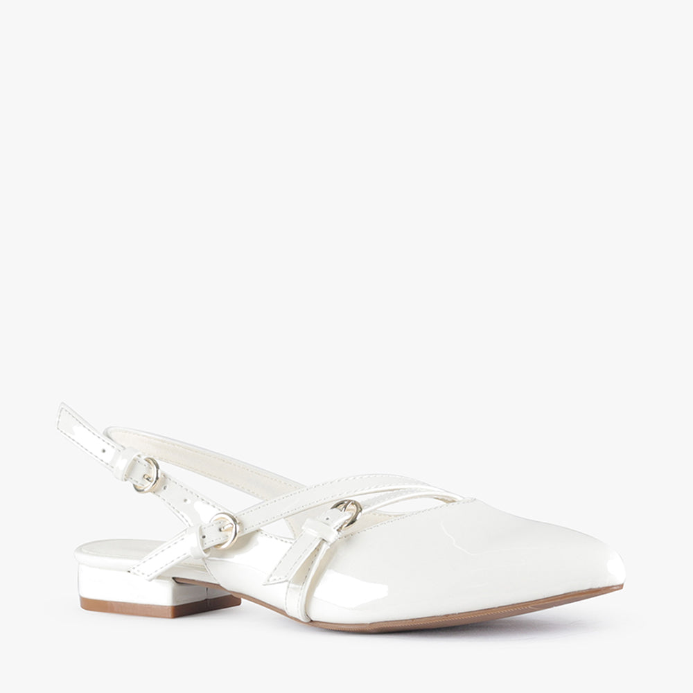 This flats sleek design offers a sophisticated look perfect for both work and casual outings. The comfortable flat sole ensures all-day wearability, while the slingback strap provides a secure fit. Elevate your wardrobe with this versatile and elegant shoe that combines fashion and function effortlessly.