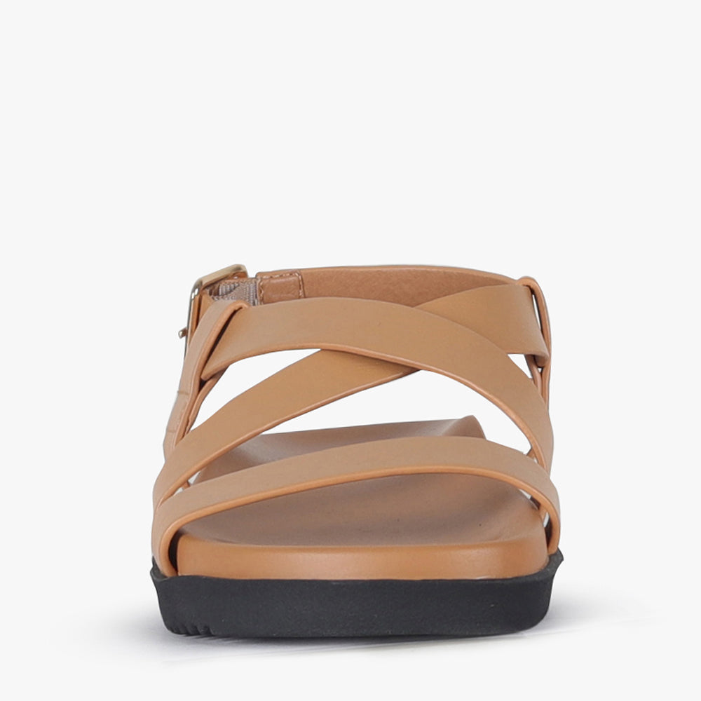 Experience comfort and style with Evans strappy sandals. The cross-over strap adds flair while the comfortable footbed keeps you going all day. Take on your day with confidence and ease in these must-have sandals.