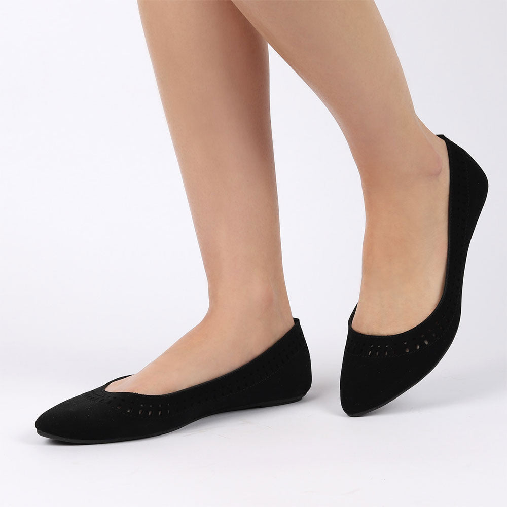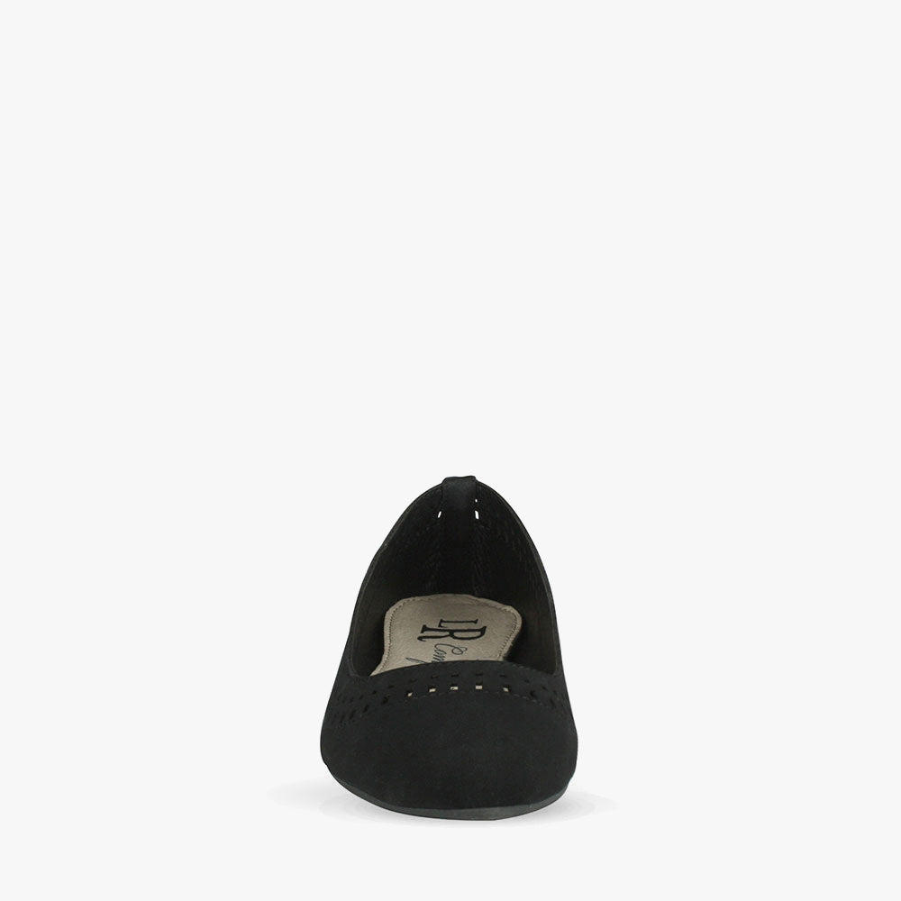 Fern is a comfort ballet flat. Featuring a laser-cut detail and lightly cushioned innersole, this style is perfect for errand running and coffee dates. Pop on these versatile flats by London Rebel Comfort through the warmer and colder seasons by just adding stockings.