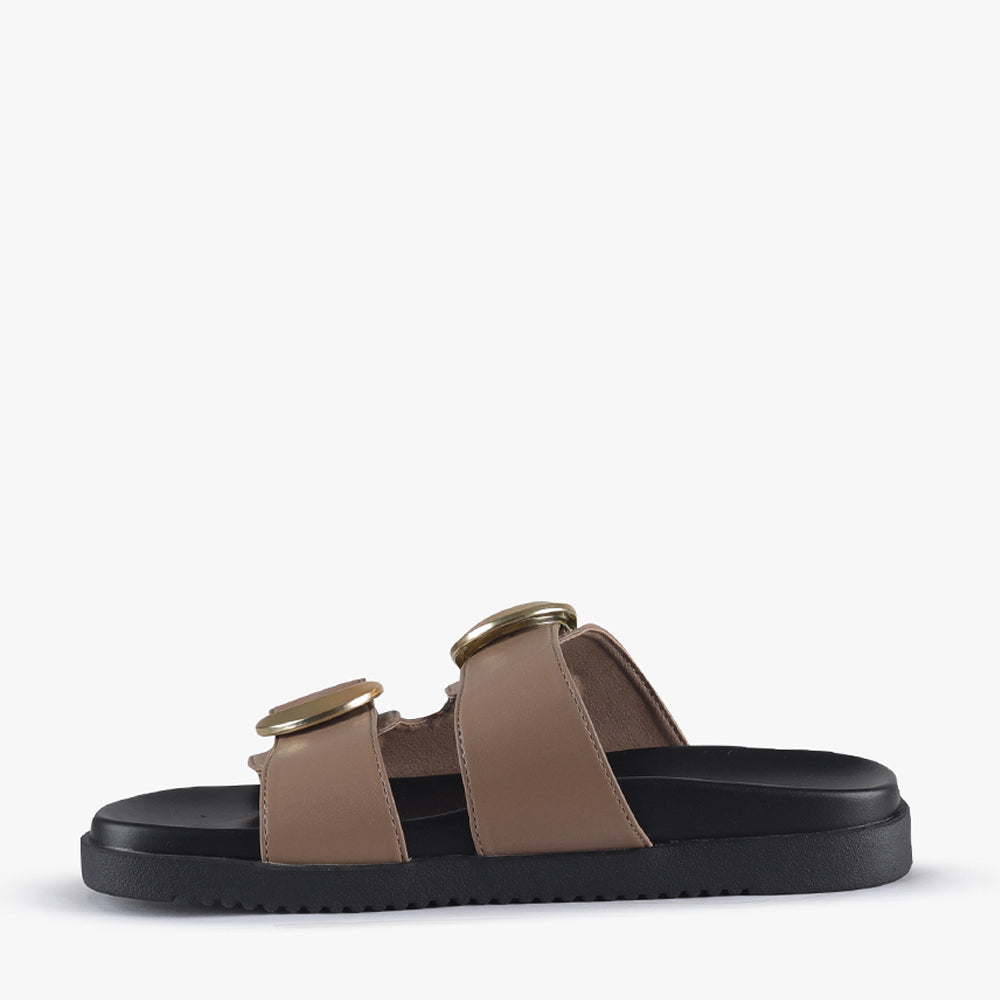 Step into comfort and style with the perfect double buckle slide sandal! These sandals elevate any casual outfit while providing all-day comfort with a padded sole.