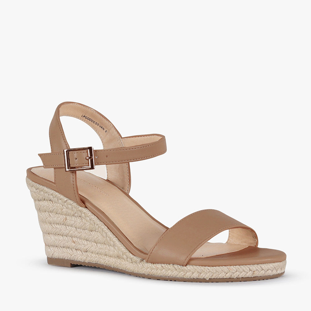 Goddess is a mid-height espadrille wedge. A simple strap across the toes and a buckled ankle strap makes Goddess the perfect go-with-everything wedges to add to your shoe-drobe this season. Dresses, skirts, jeans and shorts all look great with Goddess by Naughty Monkey.
