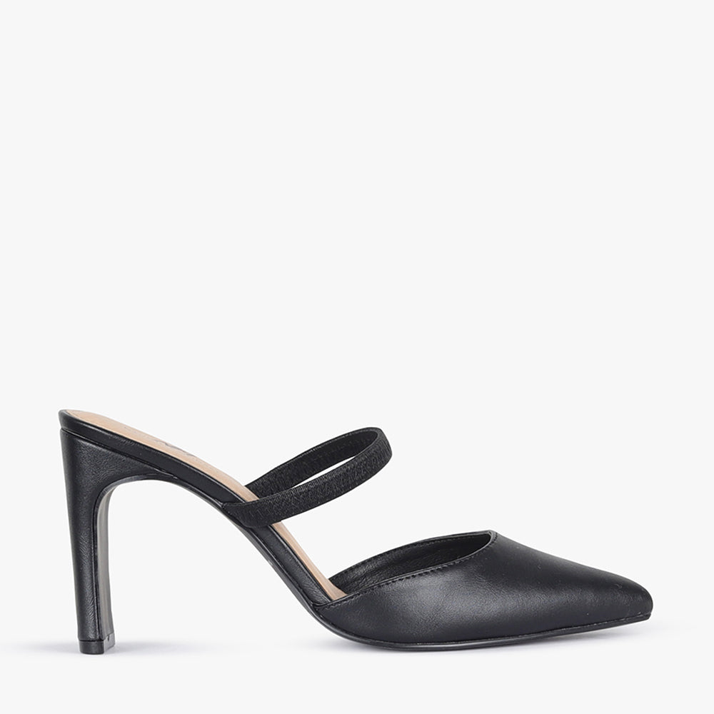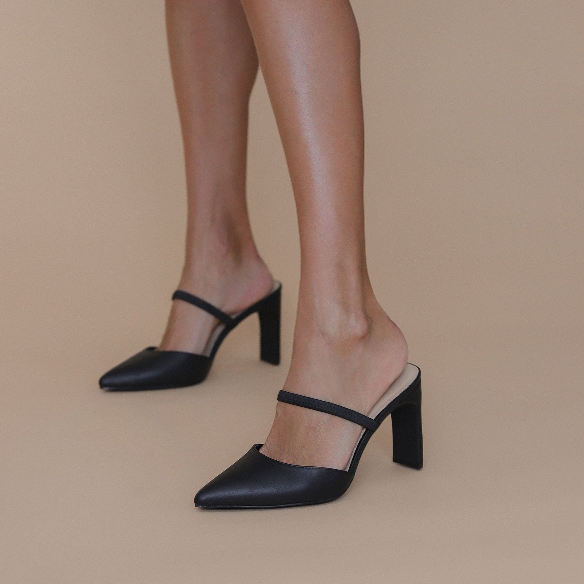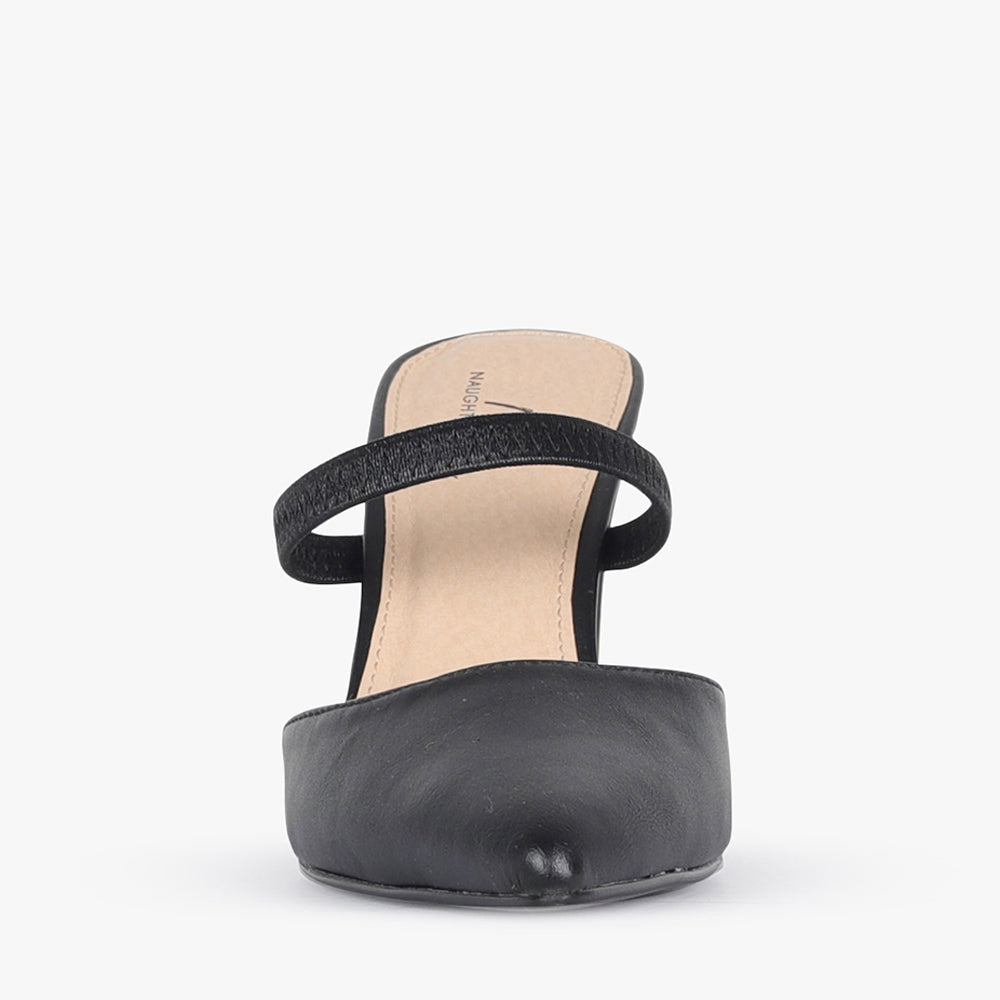 Featuring a classic pointed toe, slender strap supporting the vamp and block heel for stability. The perfect work-to-weekend mules, for evening wear, and in between. Pair them with a fashion-forward blazer dress. Slide into the Jade heels by Naughty Monkey.