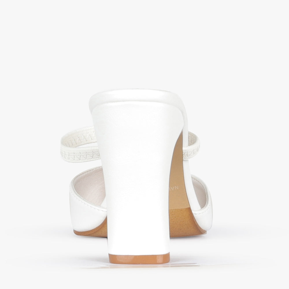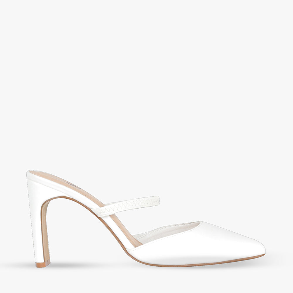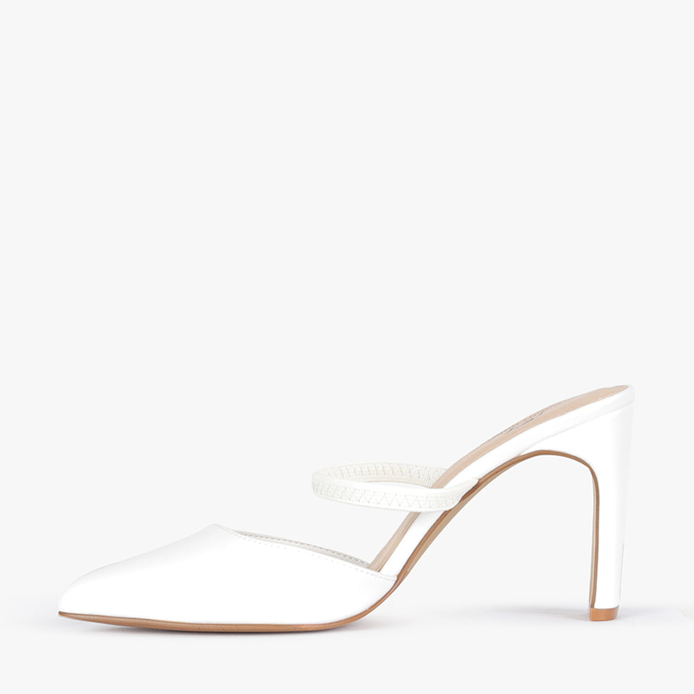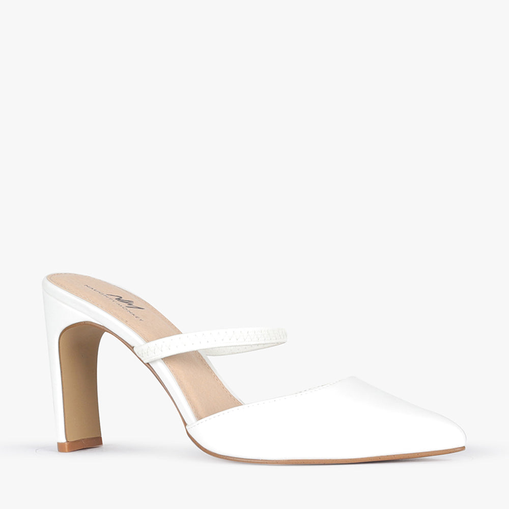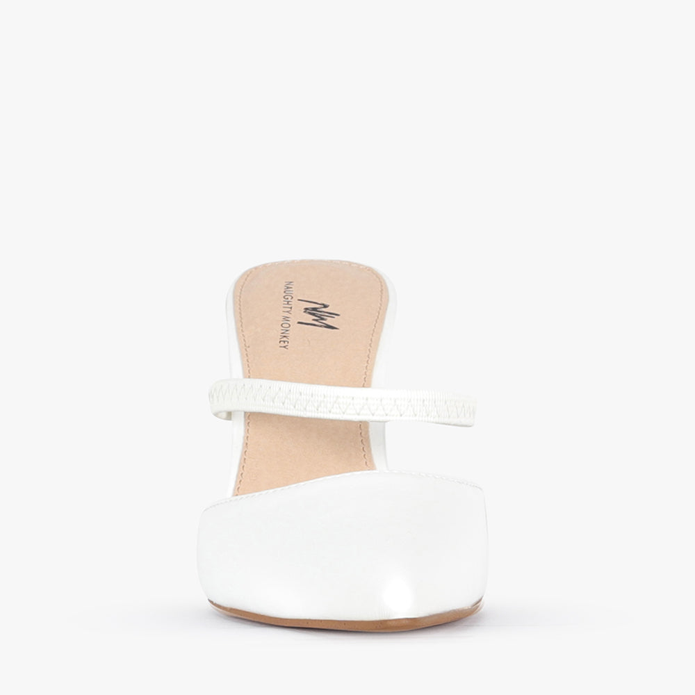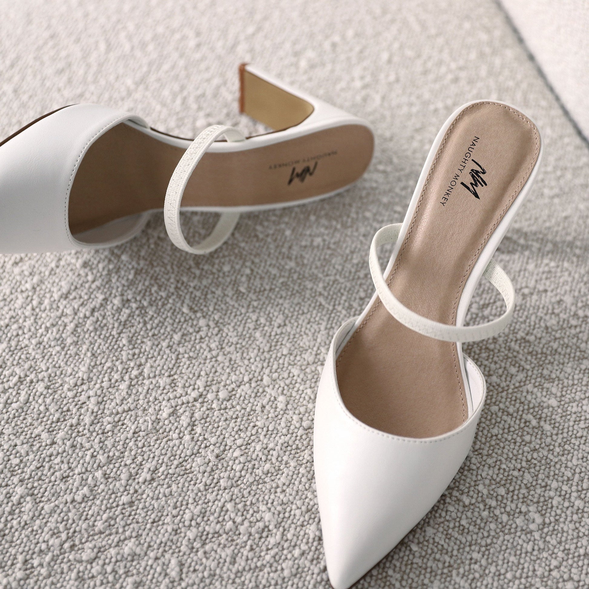Featuring a classic pointed toe, slender strap supporting the vamp and block heel for stability. The perfect work-to-weekend mules, for evening wear, and in between. Pair them with a fashion-forward blazer dress. Slide into the Jade heels by Naughty Monkey.