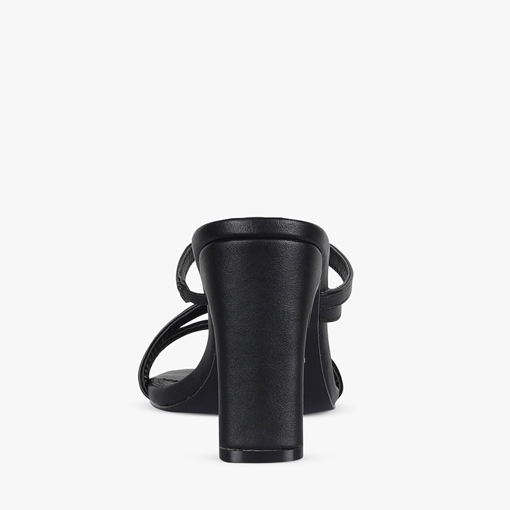 Kenny is a strappy block heel mule.