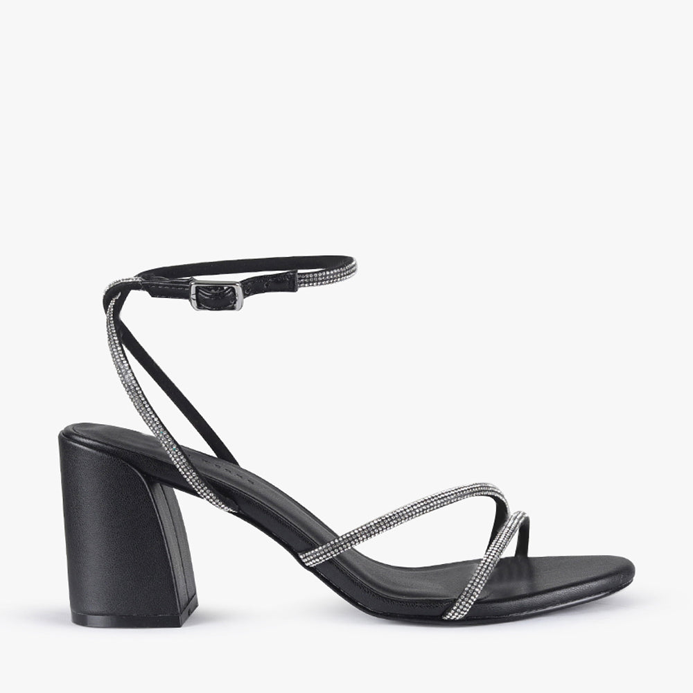 Featuring a block heel that provides stability and diamonte straps add a touch of bling. Feel confident and chic with these unique heels! The perfect heel for your next event that will take any outfit to the next level.