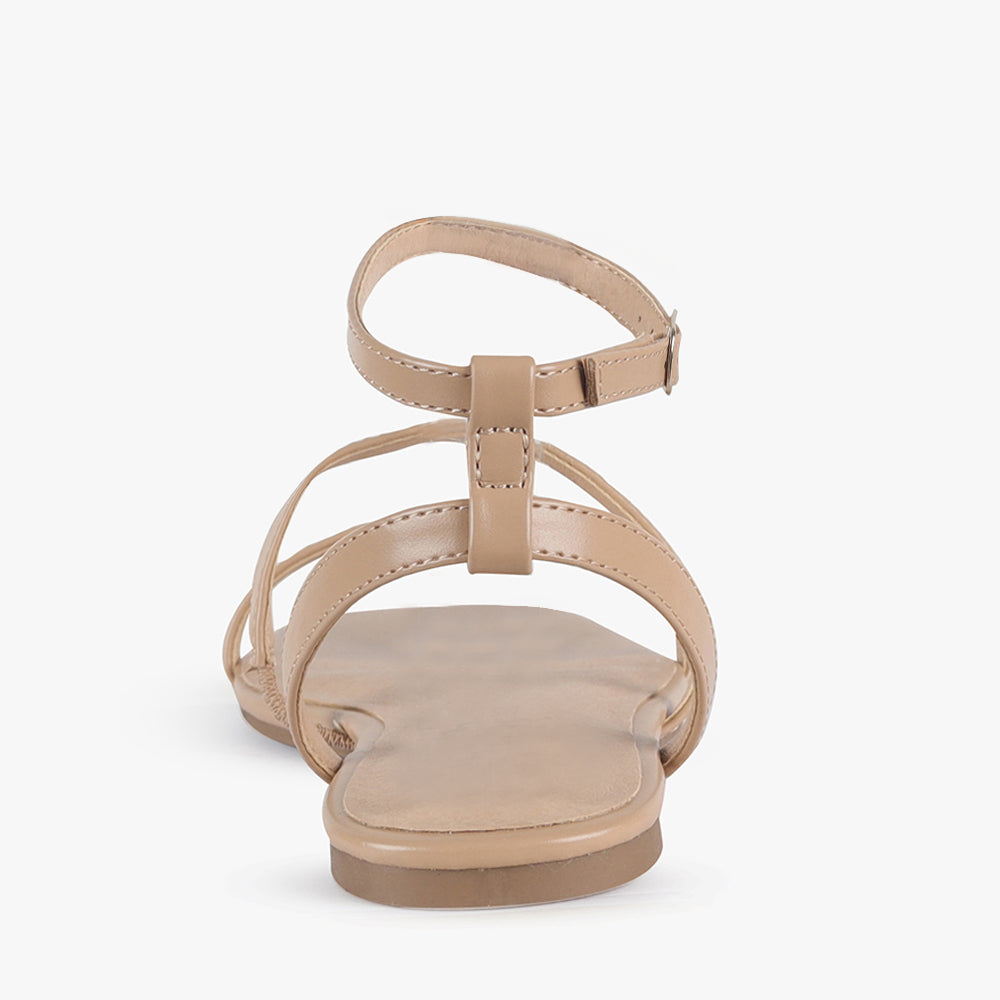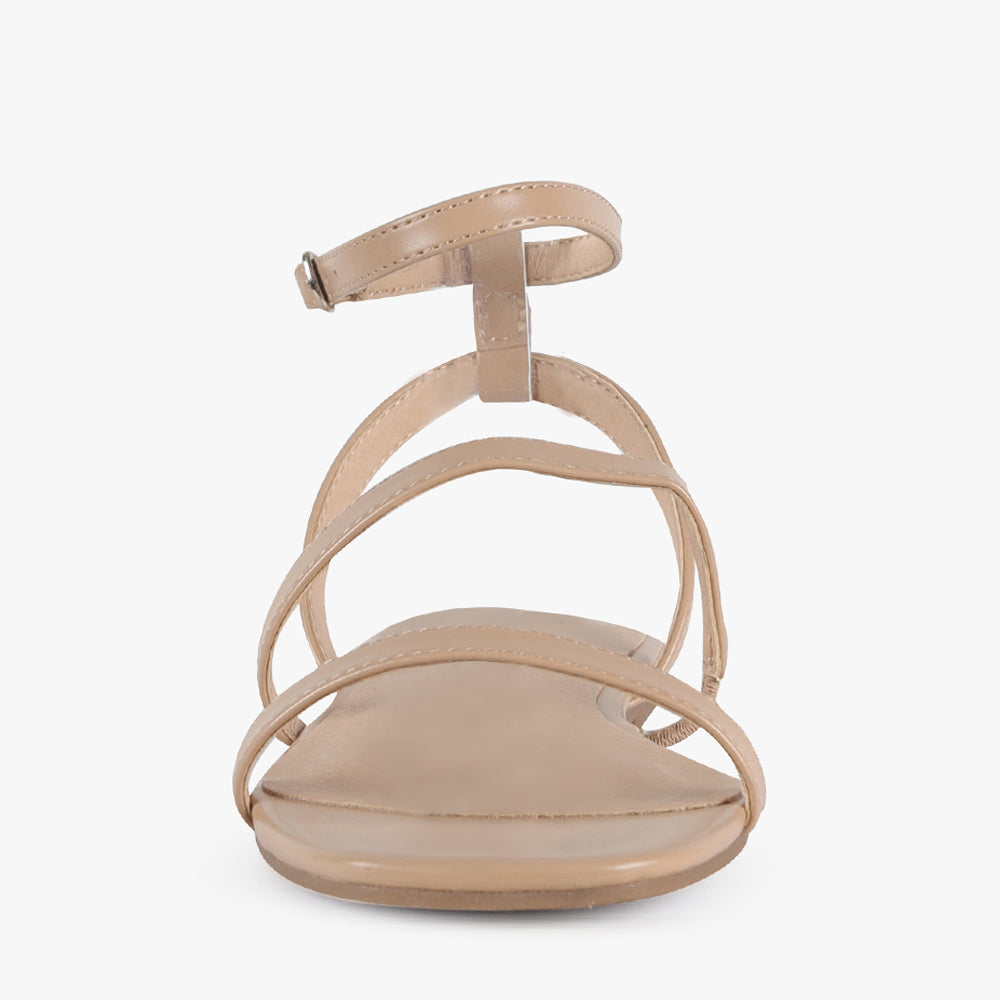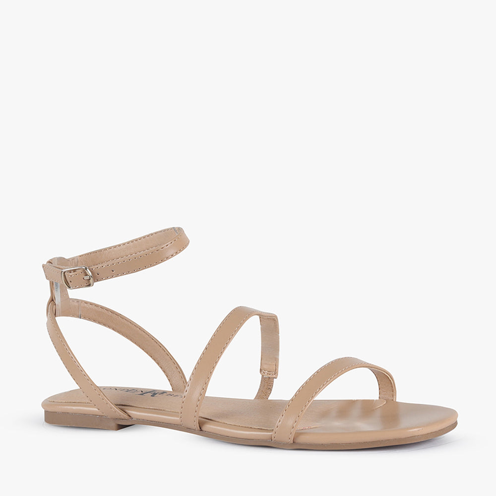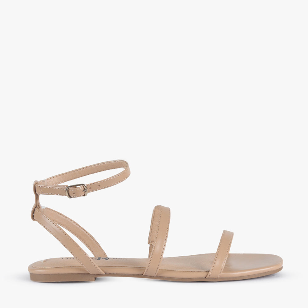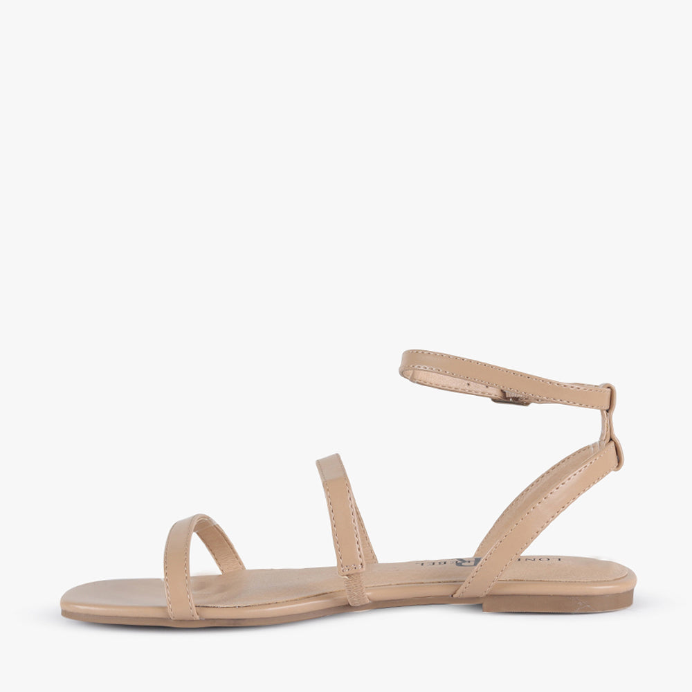Featuring thin straps across the foot and securing at the ankle, these are the perfect barely there sandal. Their simplicity make them easy to pair with any outfit.