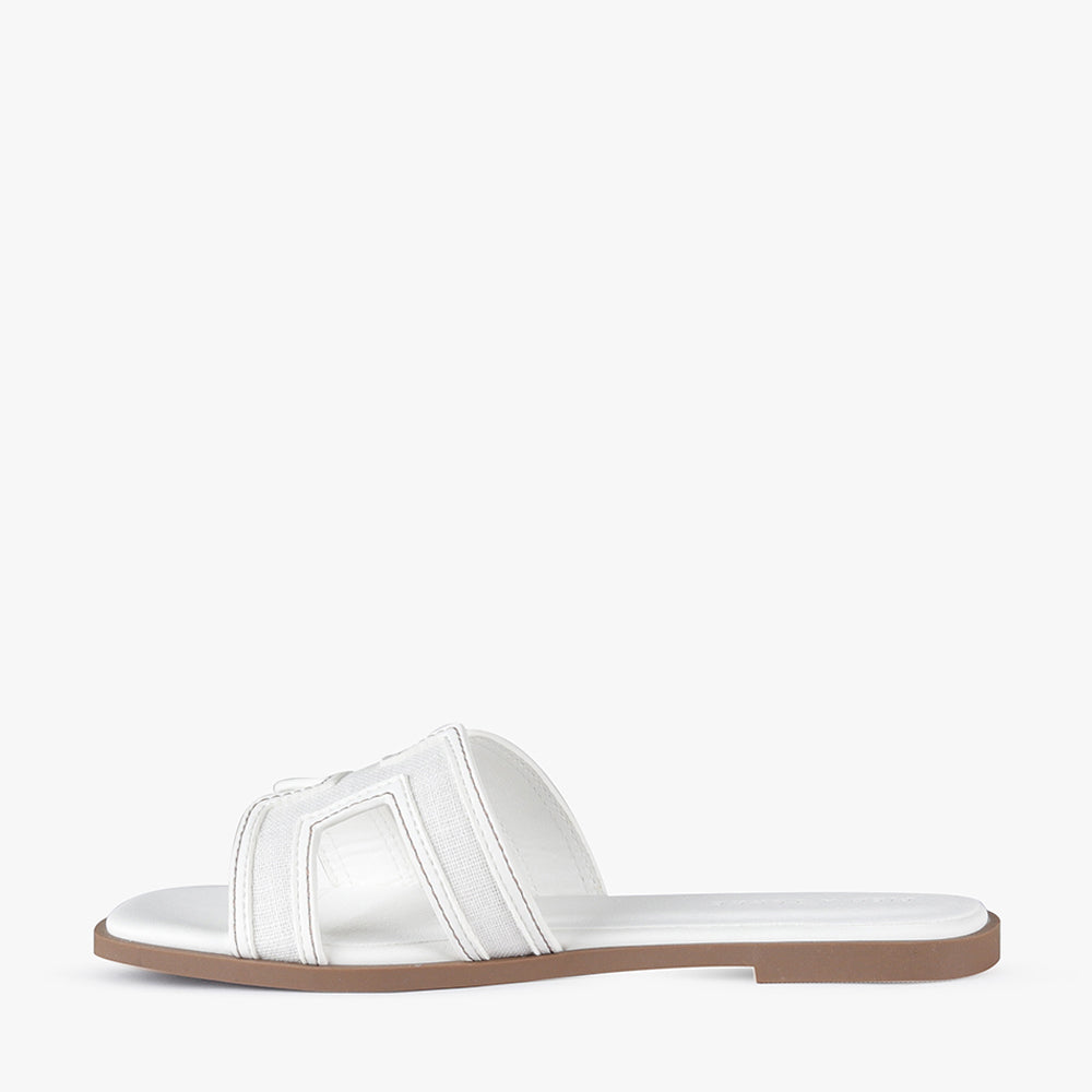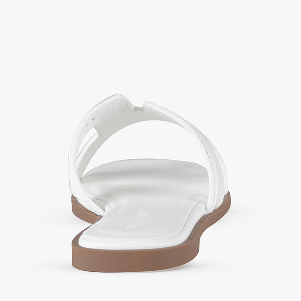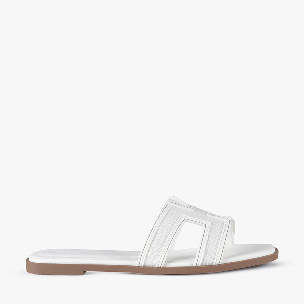 The ultimate summer sandal! Slip on these stylish flat sandals with cut-out details for an effortlessly chic look. Perfect for all-day wear, these sandals are both comfortable and trendy. Elevate your summer style with Lucy!