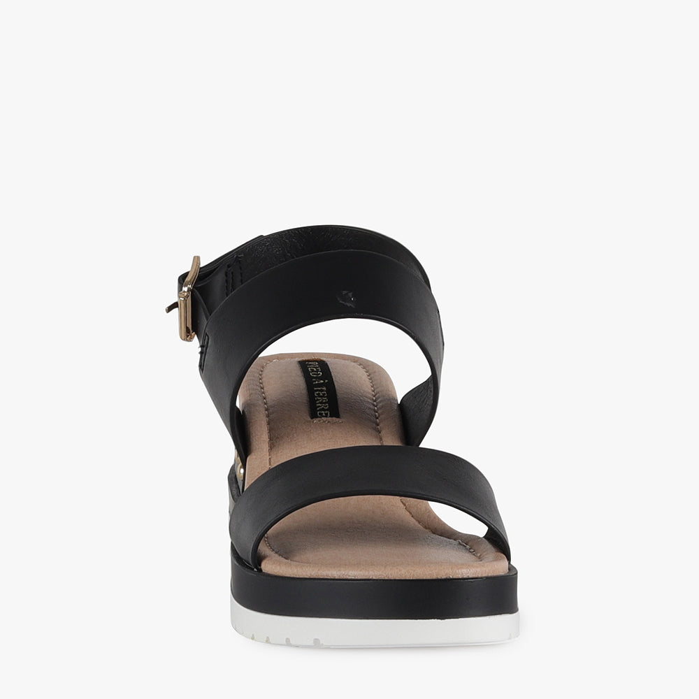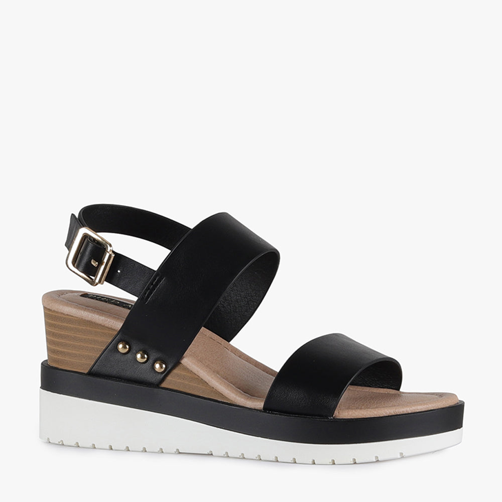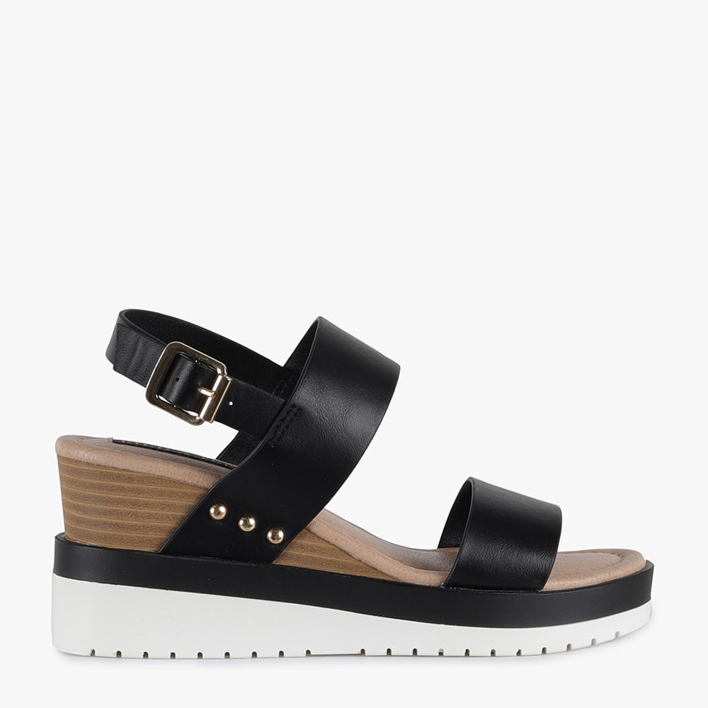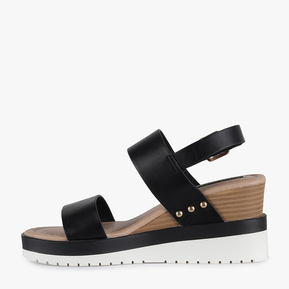 Malibu is a strappy wedge sandal.