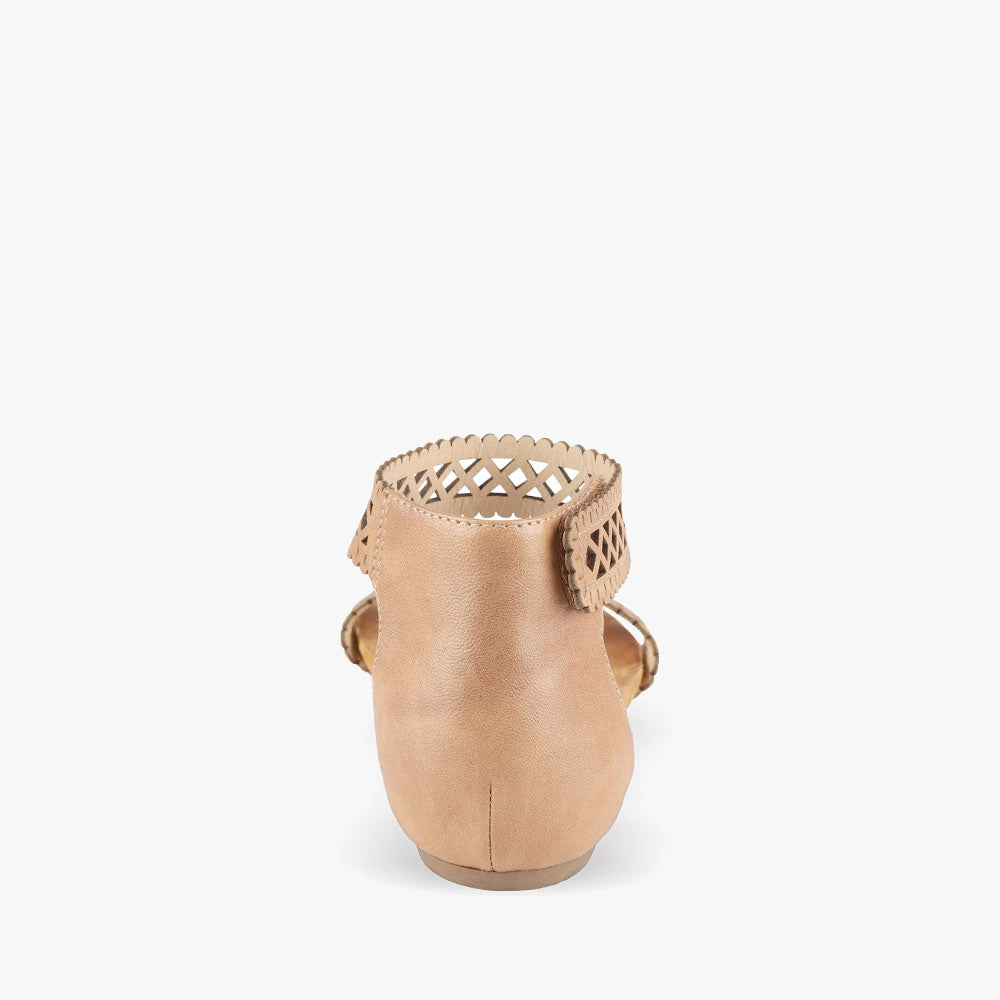 Marcia is an open sandal with a comfortable footbed. Featuring a laser cut strap encircling the ankle and across the toes, these sandals will give life to any outfit! With a velcro strap and enclosed quarter, the Marcia sandal by London Rebel Comfort provides comfort and easy wear.
