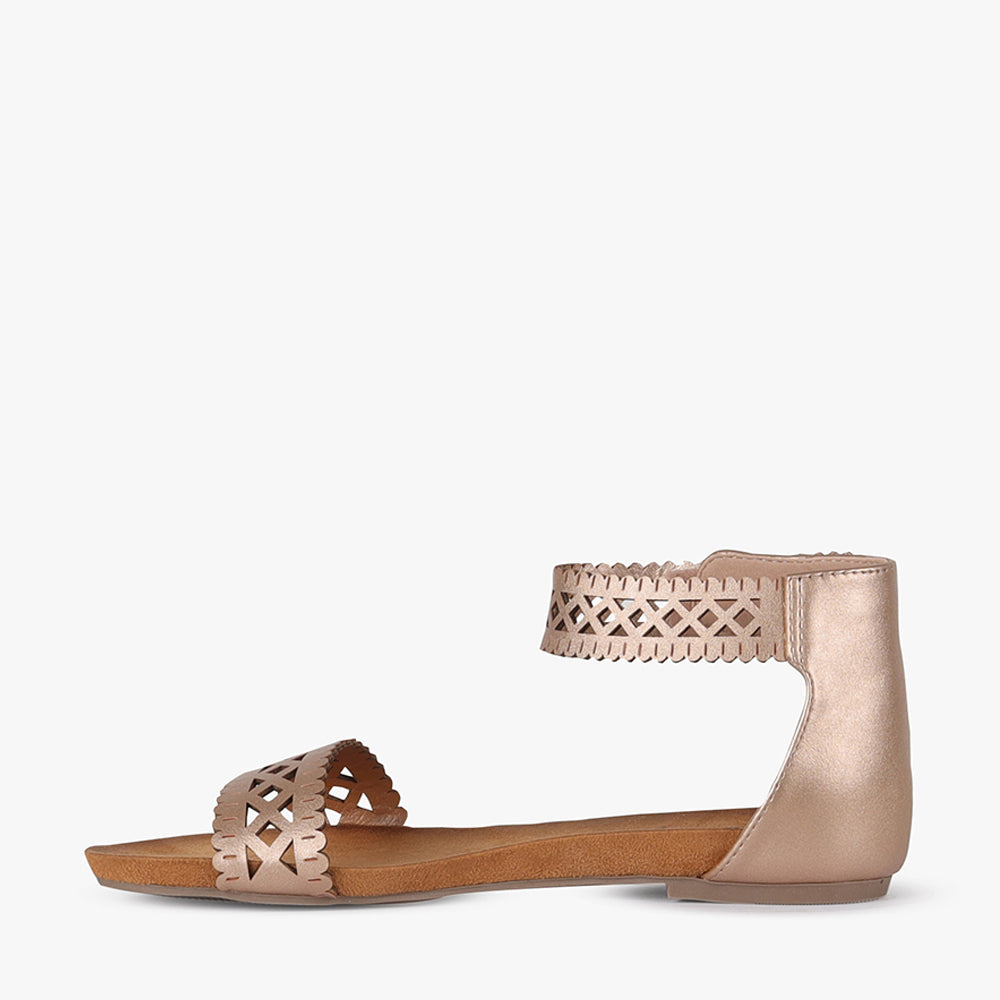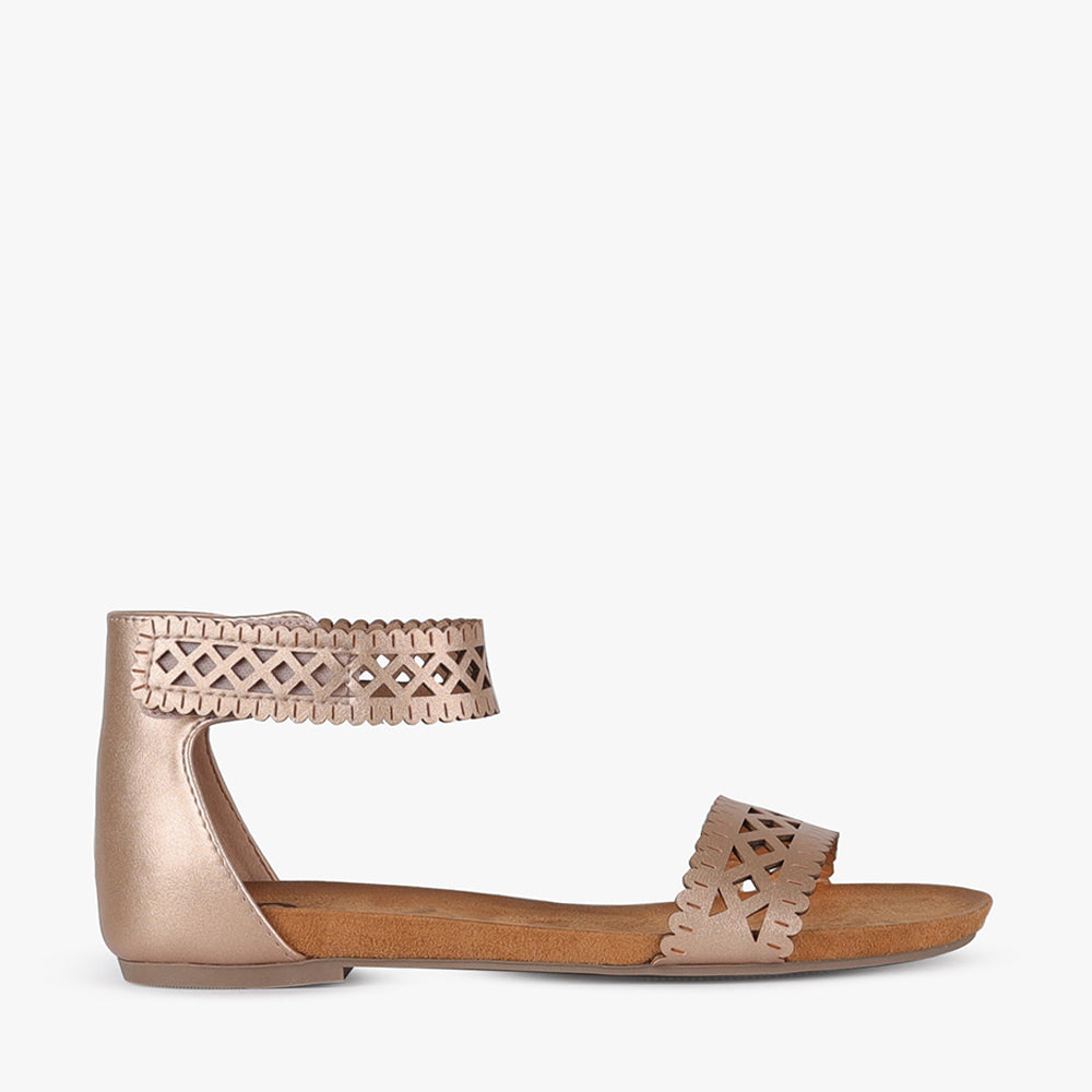 Marcia is an open sandal with a comfortable foot bed. Featuring a laser cut strap encircling the ankle and across the toes, these sandals will give life to any outfit! With a Velcro strap and enclosed quarter, the Marcia sandal by London Rebel Comfort provides comfort and easy wear.