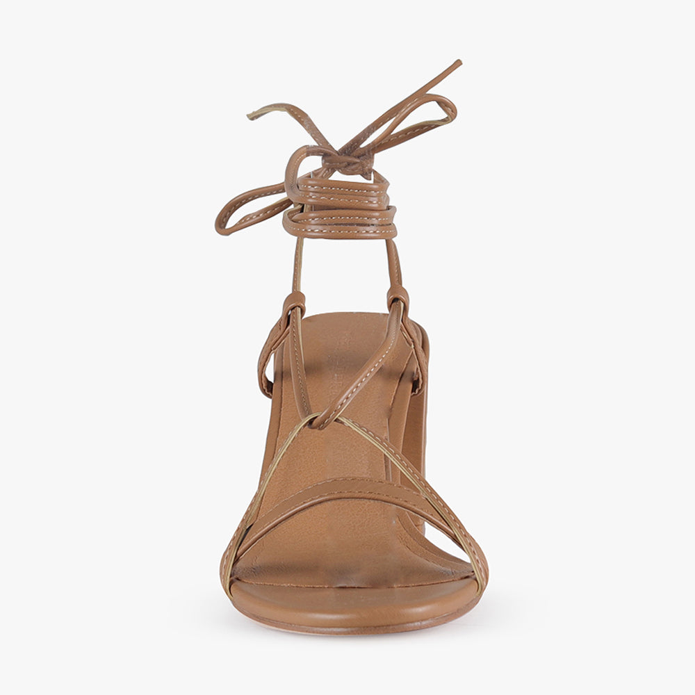 The perfect heeled sandal for those who want both style and comfort. These perfect summer heels add a trendy touch to any outfit and provide support and stability with their block heel and tie-up design. Elevate your look with Maris!