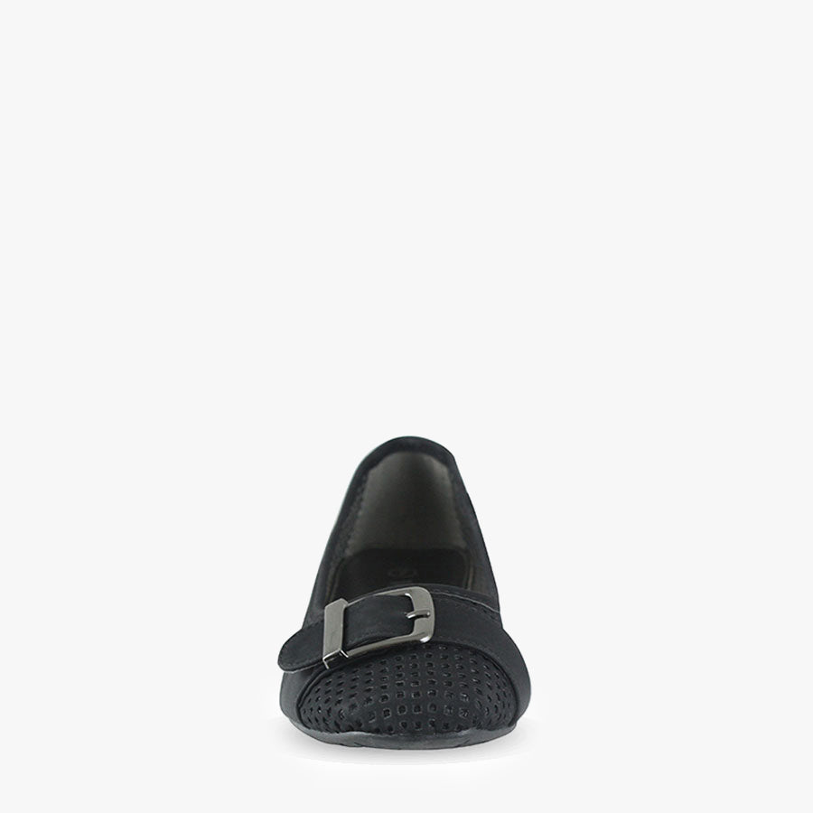 Mixalot is a ballet flat with a square shaped perforated upper. Featuring a contrast coloured top line, quarter and across toe cap buckled strap, Mixalot is a playful flat. With a contoured sole for comfort and support this shoe is a necessary wardrobe addition. Pick up Mixalot flats by Venetian.