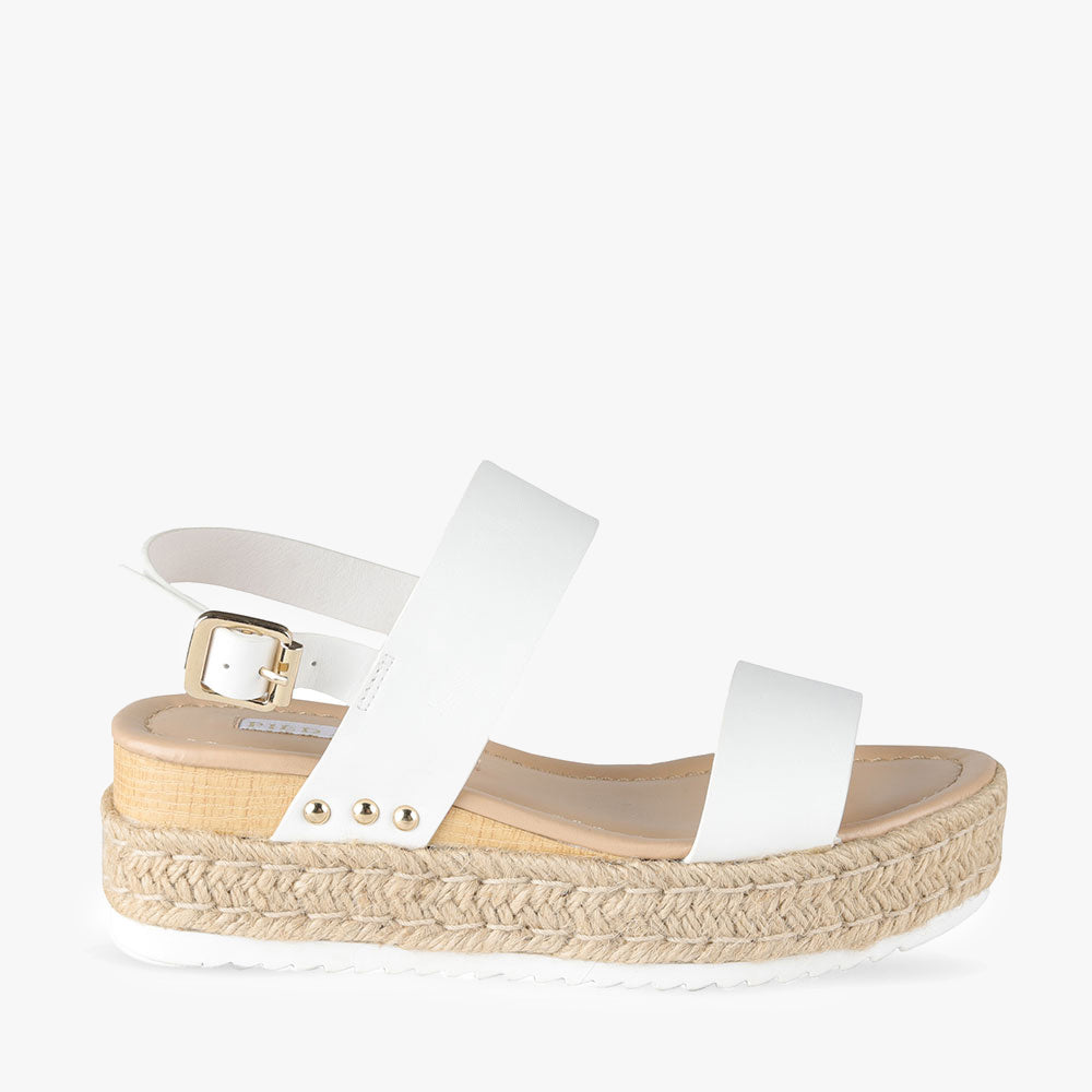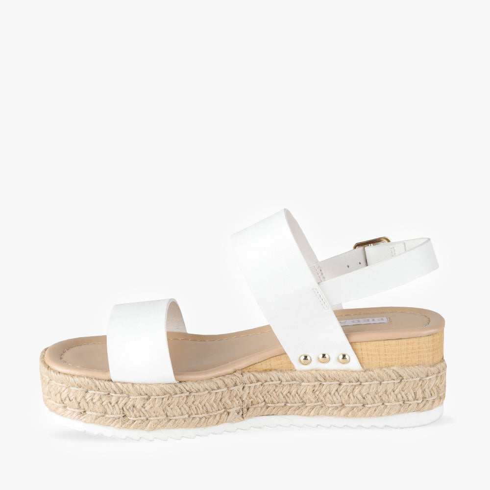 - Elevated comfortably with a sturdy espadrille sole and subtle heel wedge
