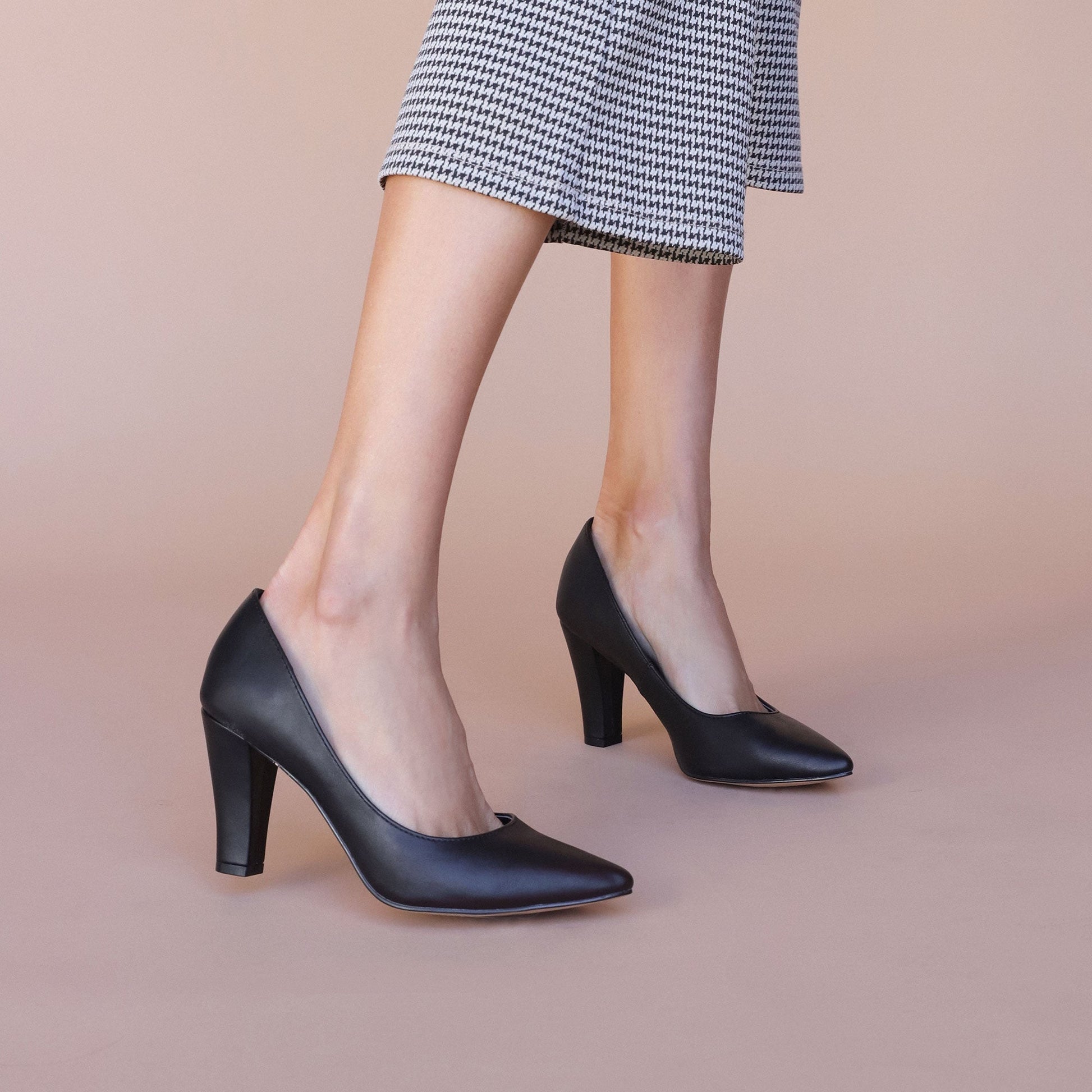 Ninetofive is a staple heel. Featuring a pointed toe with an 8cm mid heel, this classic style is super versatile. Wear with suit pants and a button up blouse for the perfect office attire. Look sharp at work or out for dinner and drinks in Ninetofive heels by London Rebel.