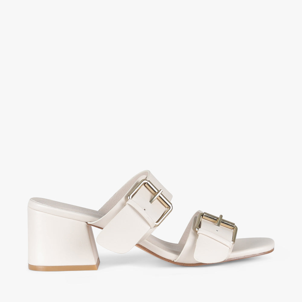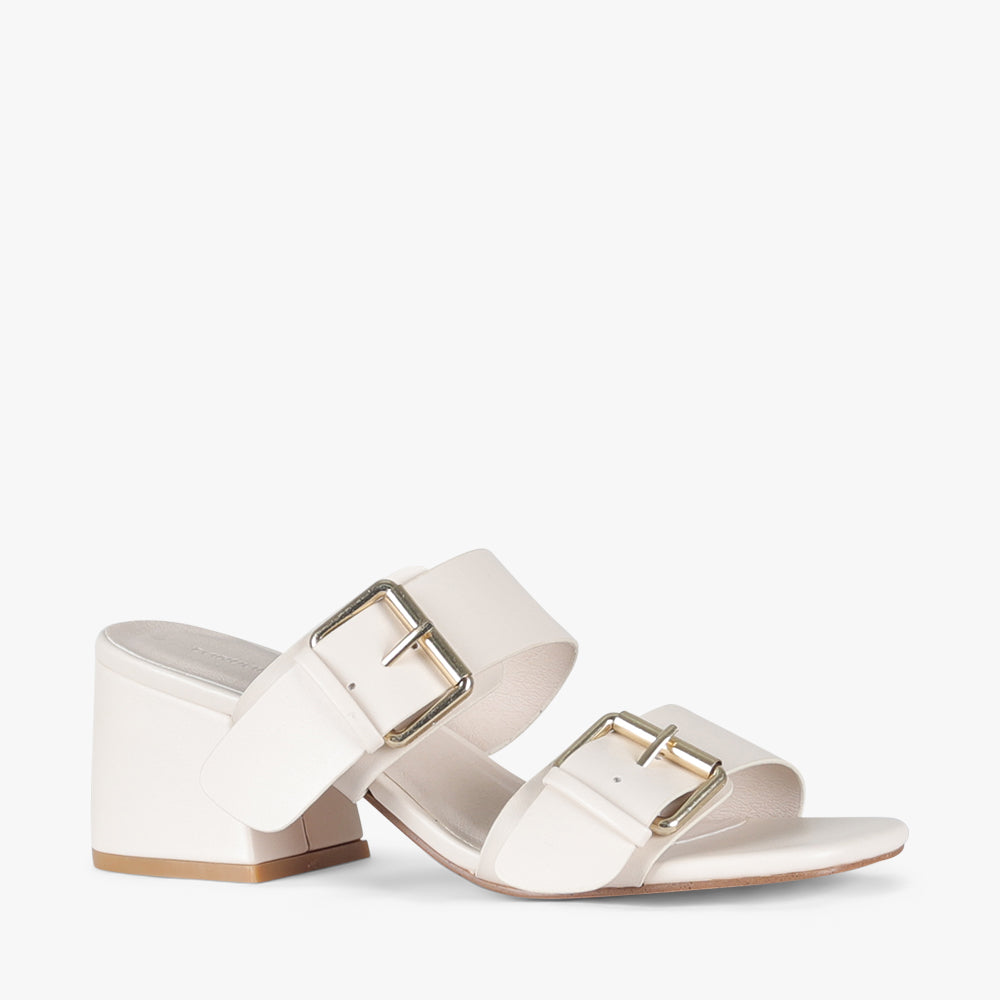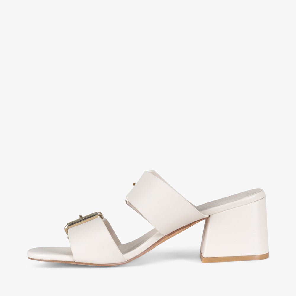Rita is a slide on mid-block heel.