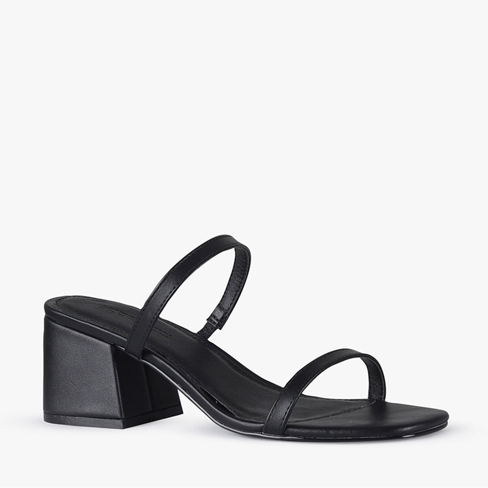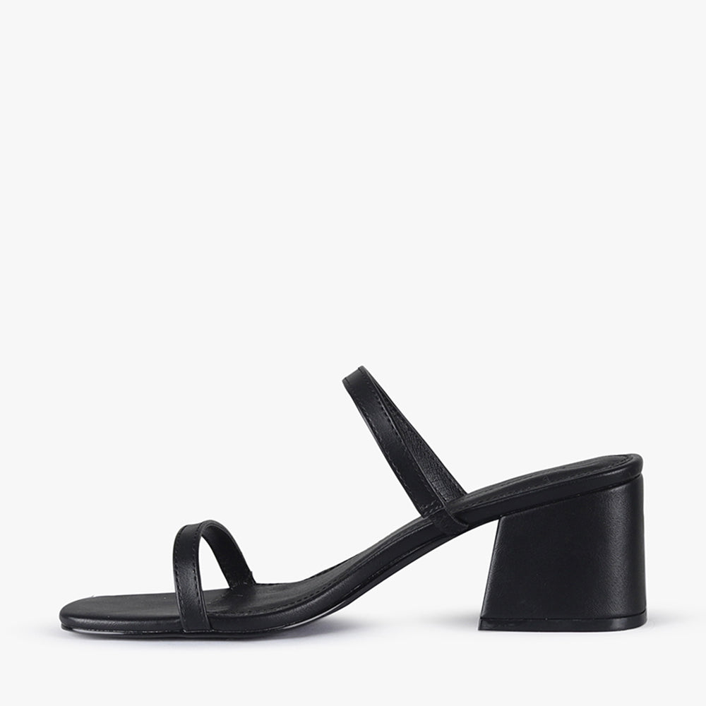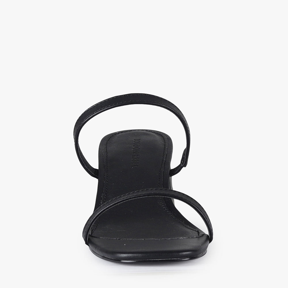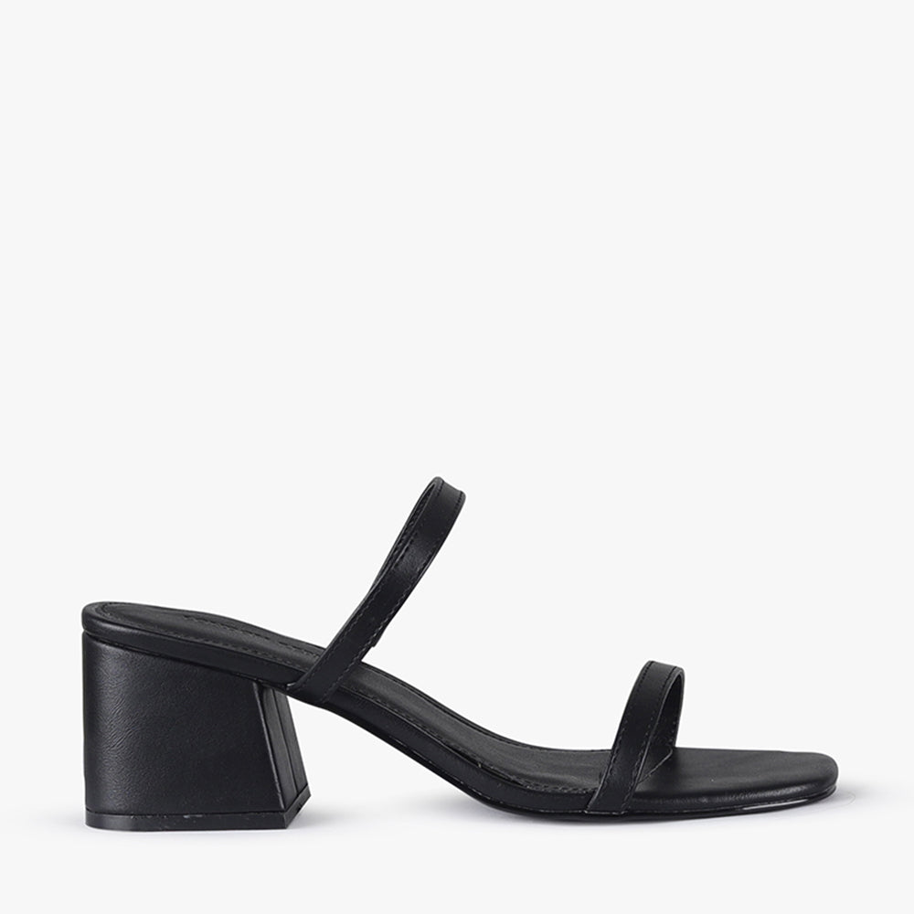 Featuring two thin straps over the toe and the vamp. Savina is minimalist in all the best ways, a classy option for any ensemble and with a little added character in the flared heel, Savina are your must-have heels this season! Pick up Savina mules by London Rebel.