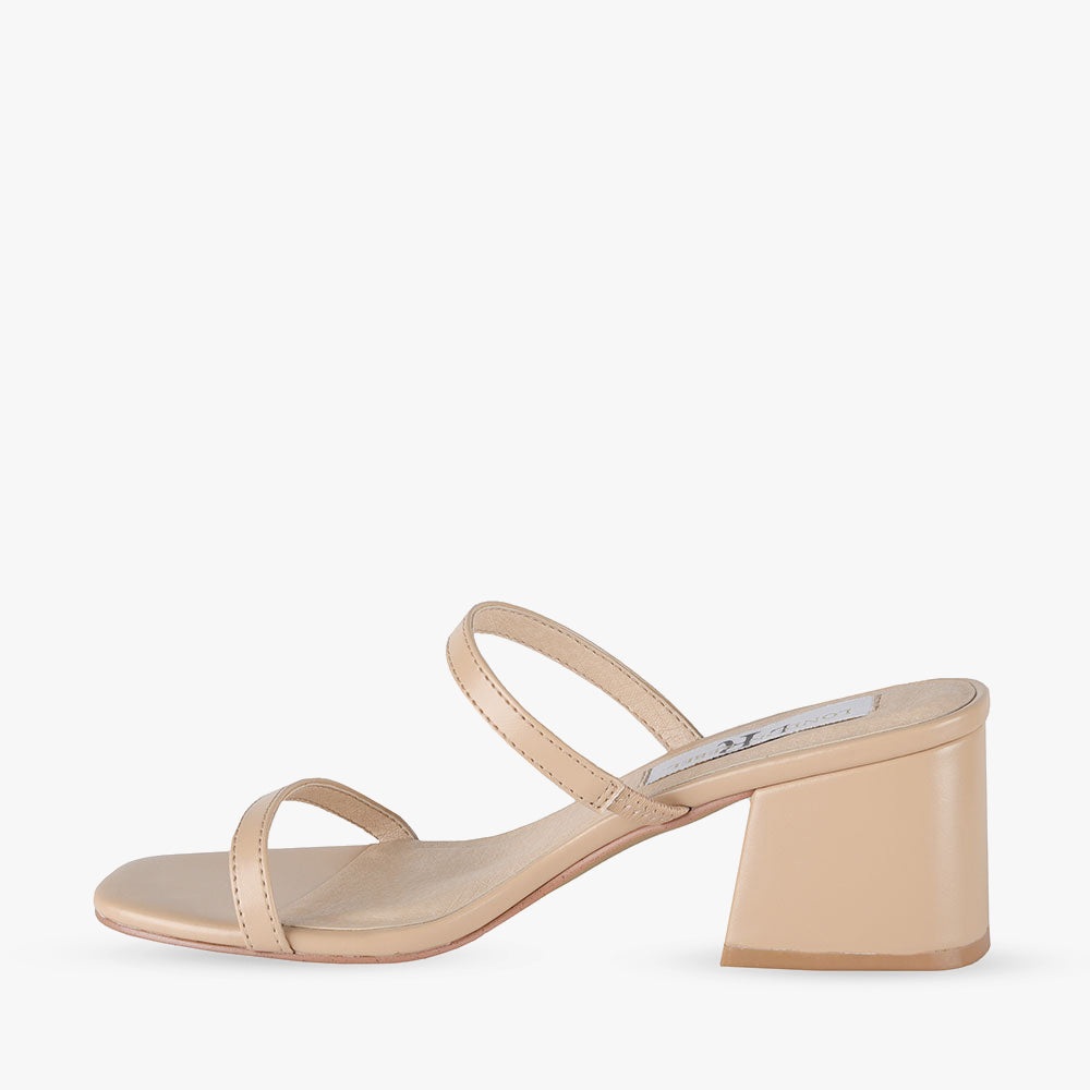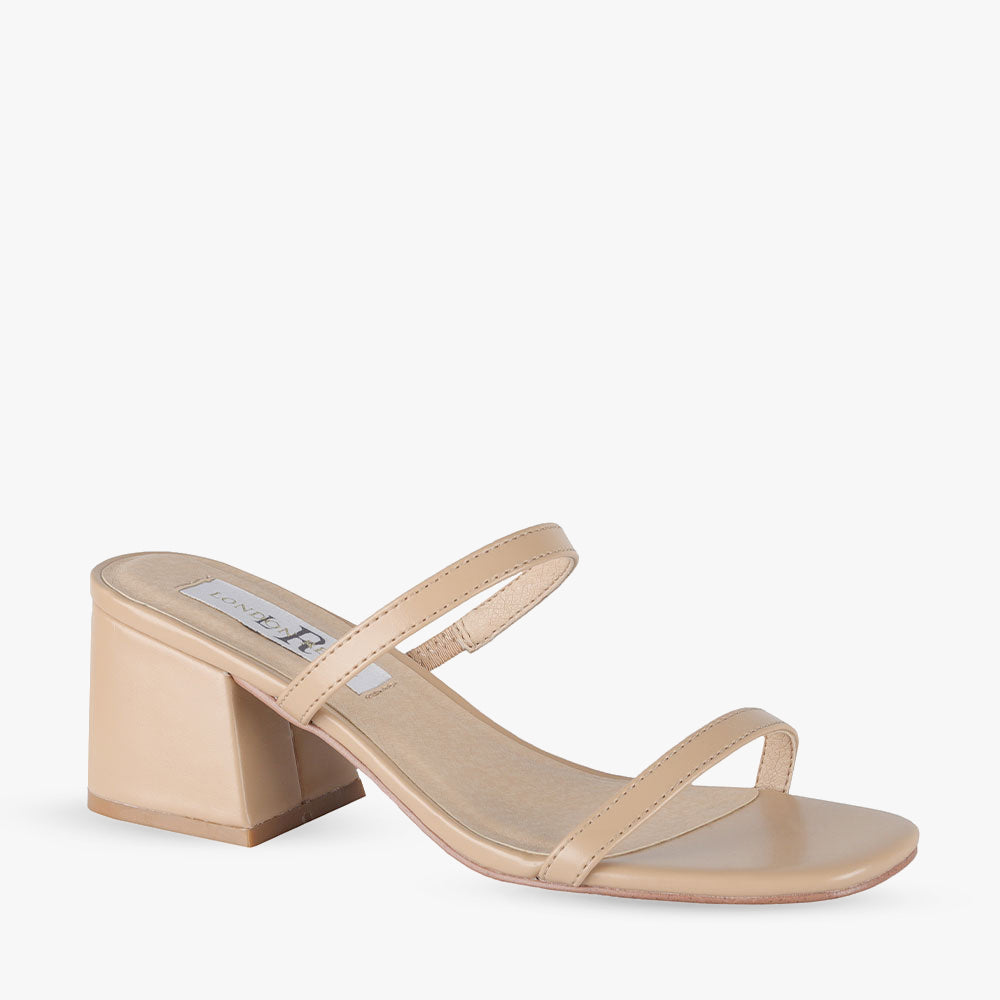 Savina is a mid height mule. Featuring two thin straps over the toe and the vamp. Savina is minimalist in all the best ways, a classy option for any ensemble and with a little added character in the flared heel, Savina are your must-have heels this season! Pick up Savina mules by London Rebel.