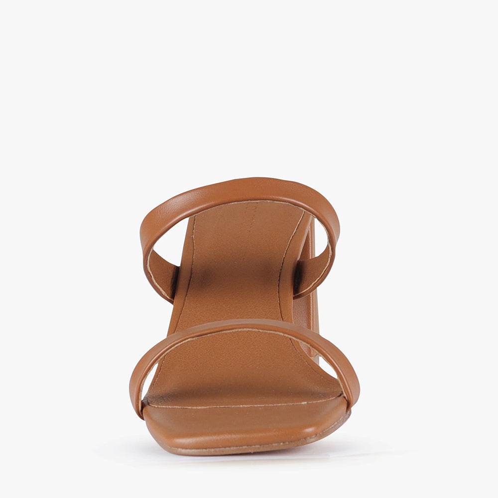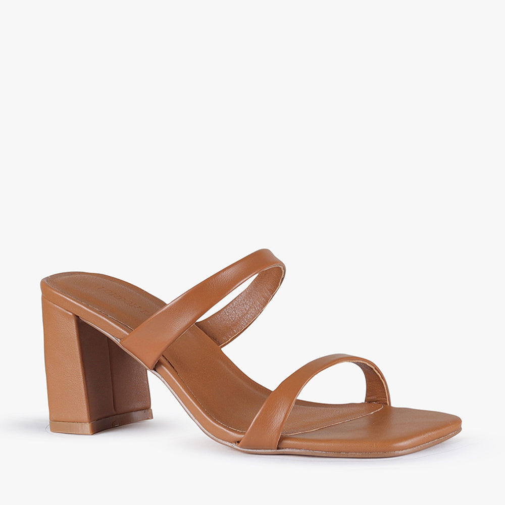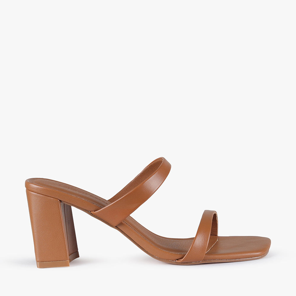 Experience effortless style with Talia! These sleek block heels feature a simple yet elegant design. The two-strap design offers both comfort and class, making them perfect for any occasion.