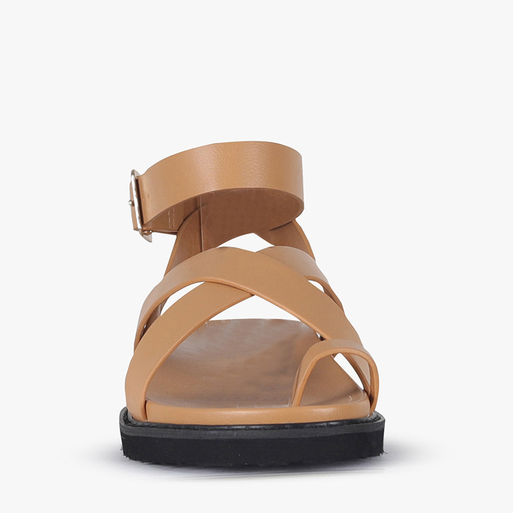 The flat sandal that will elevate your style with its strappy upper and comfortable toe strap. Perfect for everyday wear, this sandal combines fashion and function seamlessly with its lightweight base and adjustable ankle strap. Step into Temma and feel confident and stylish all day long!
