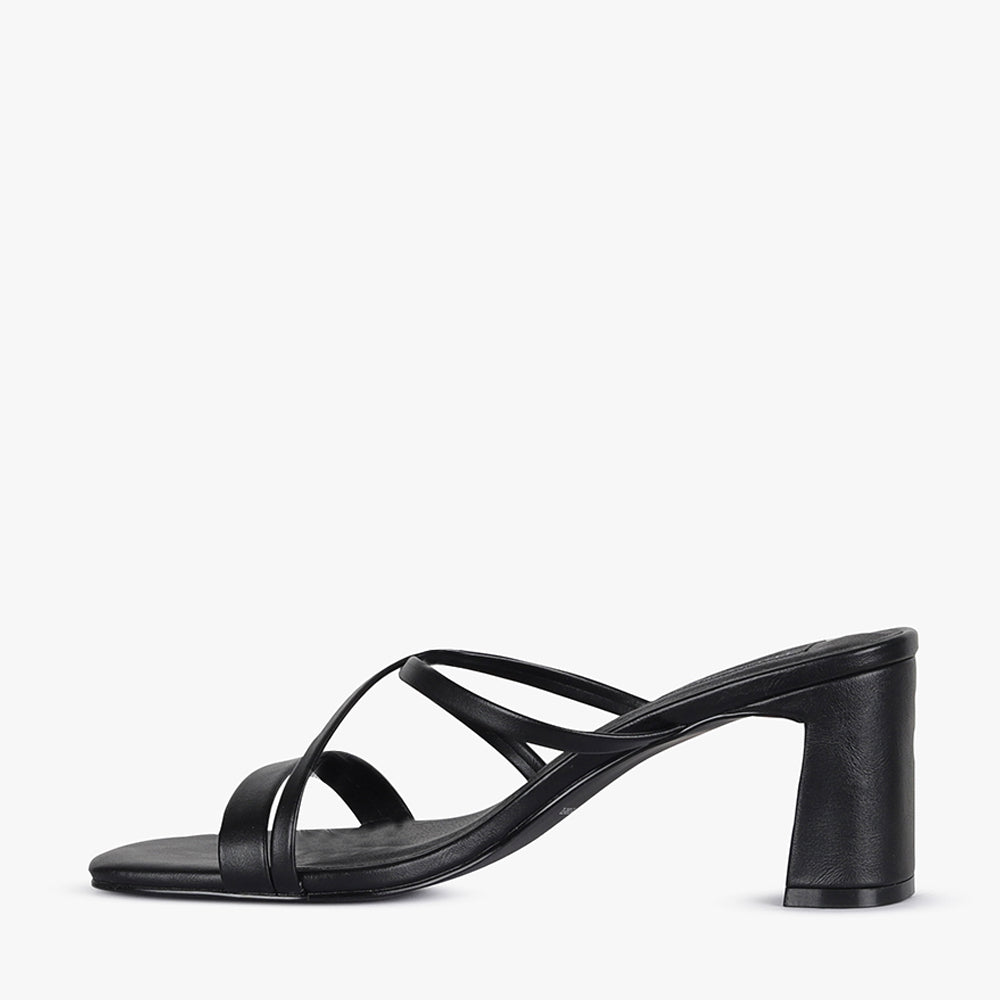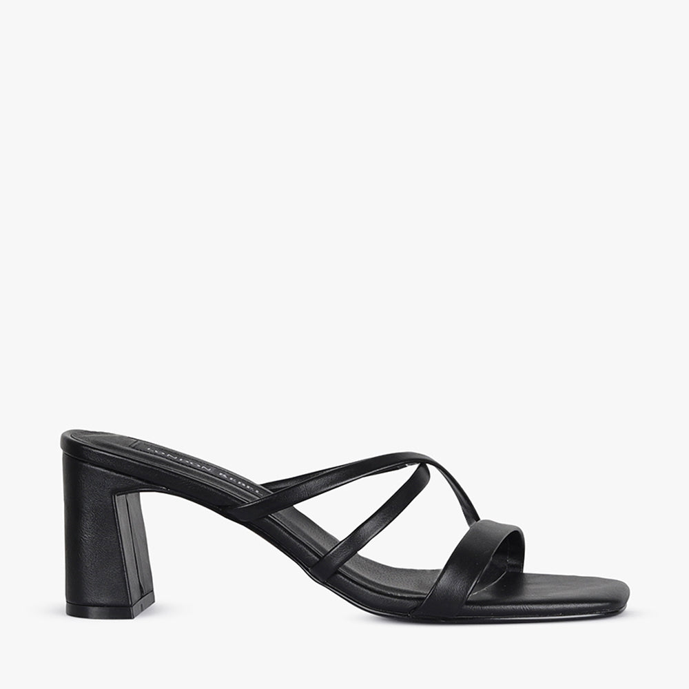 This lower block mule is a versatile and minimal heel. With its thin cross over straps, squared off toe and comfortable heel height it is sure to be on heavy rotation.