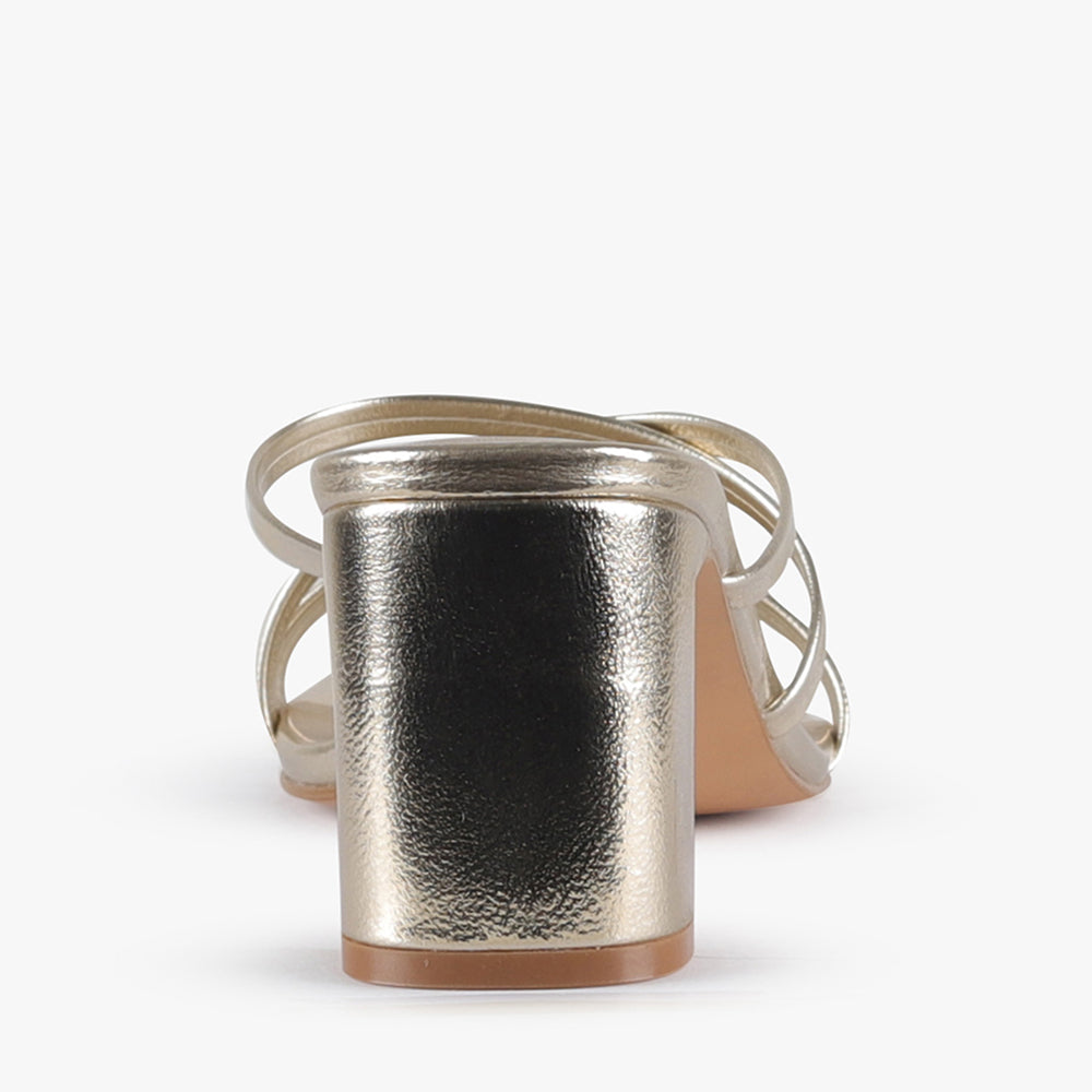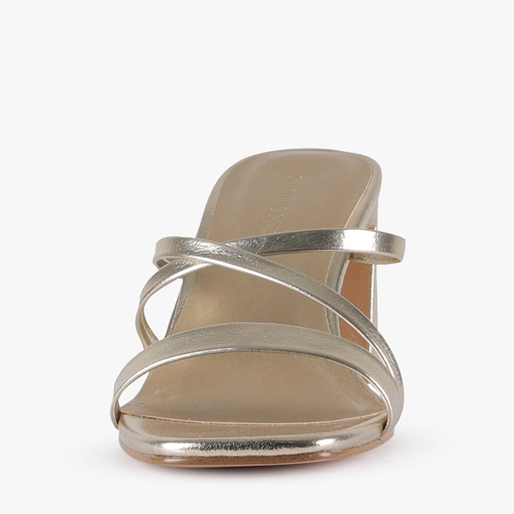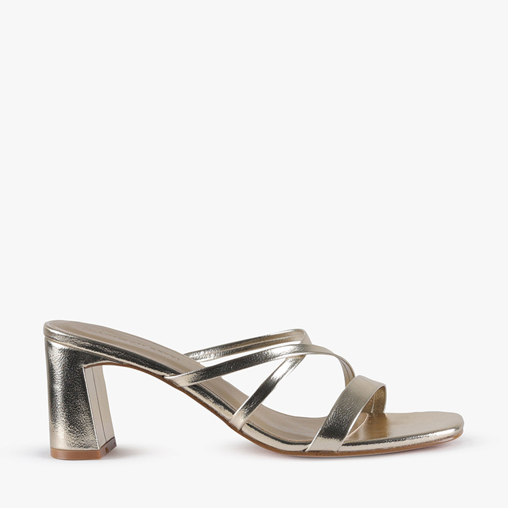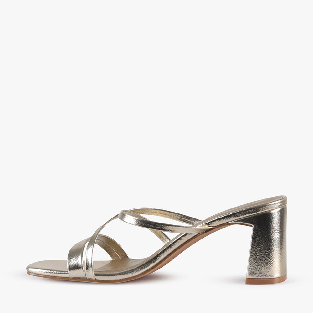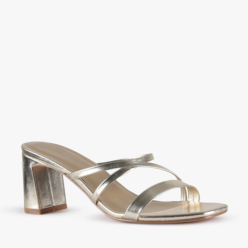 This lower block mule is a versatile and minimal heel. With its thin cross over straps, squared-off open toe and comfortable heel height it is sure to be on heavy rotation.