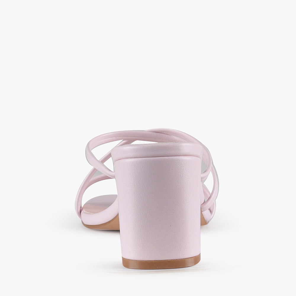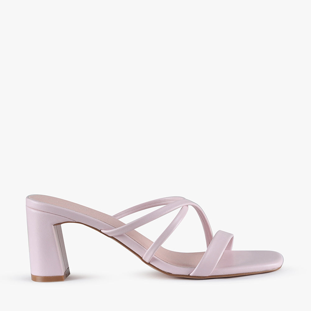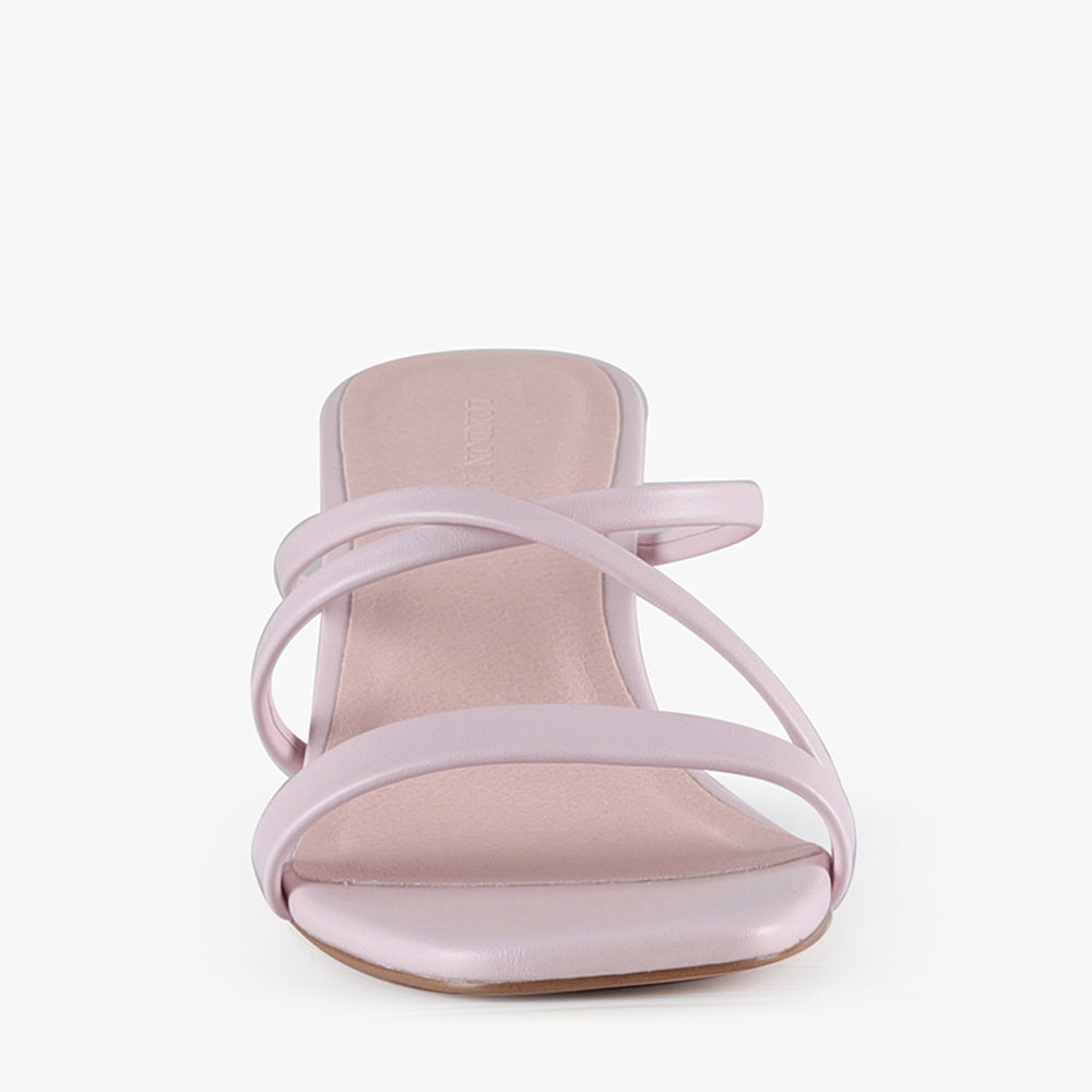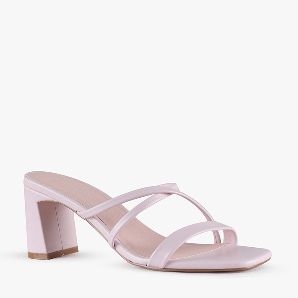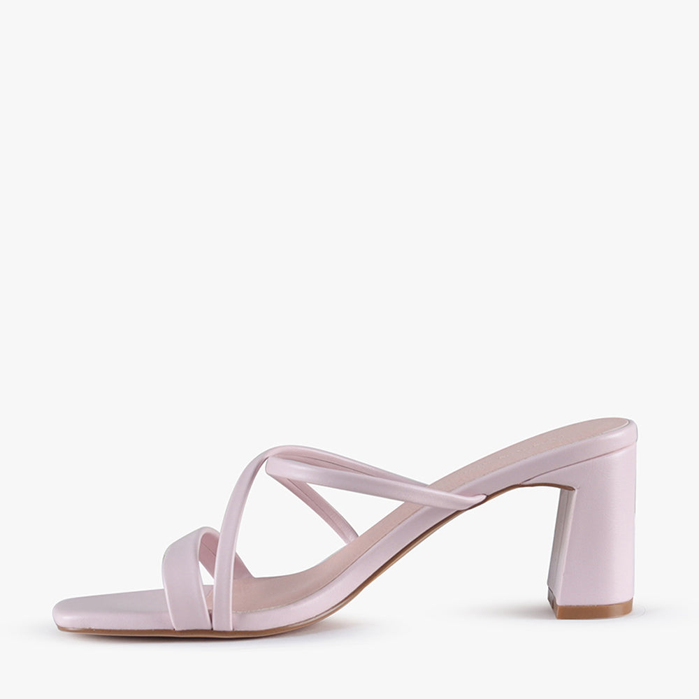 This lower block mule is a versatile and minimal heel. With its thin cross over straps, squared off open toe and comfortable heel height it is sure to be on heavy rotation.