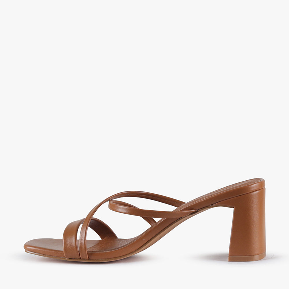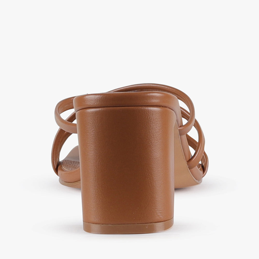 Vahli is a strappy block heel mule.