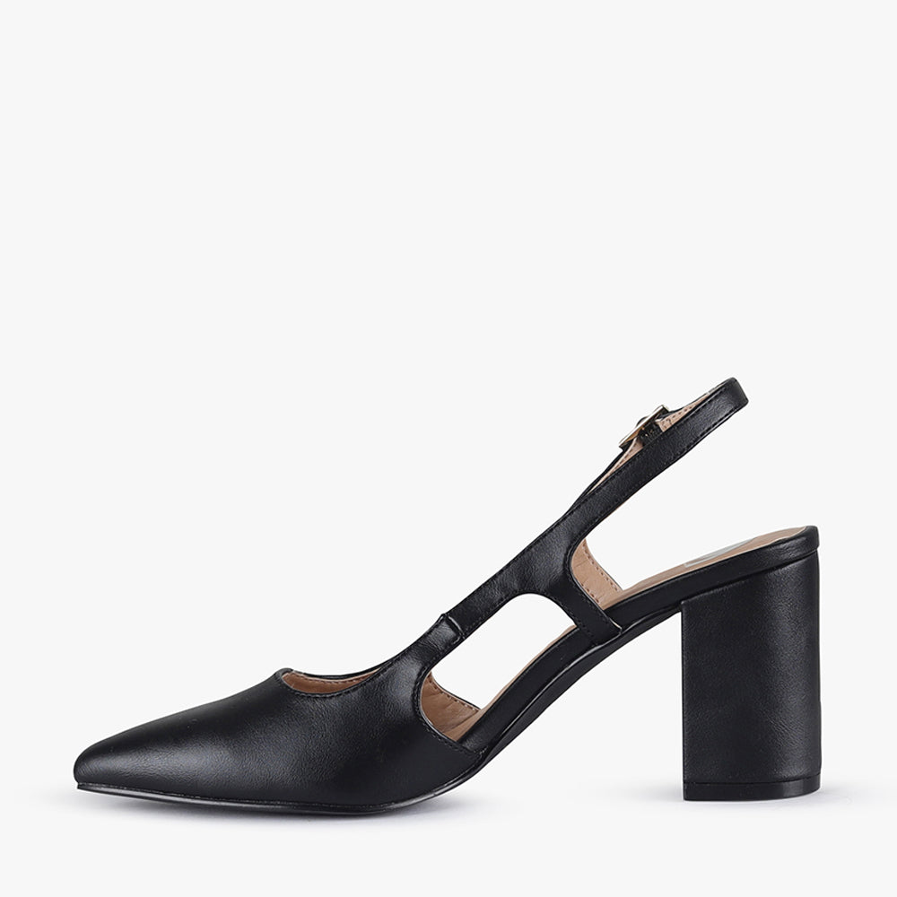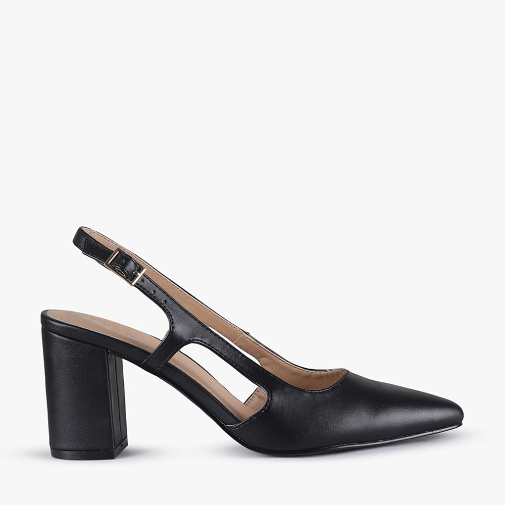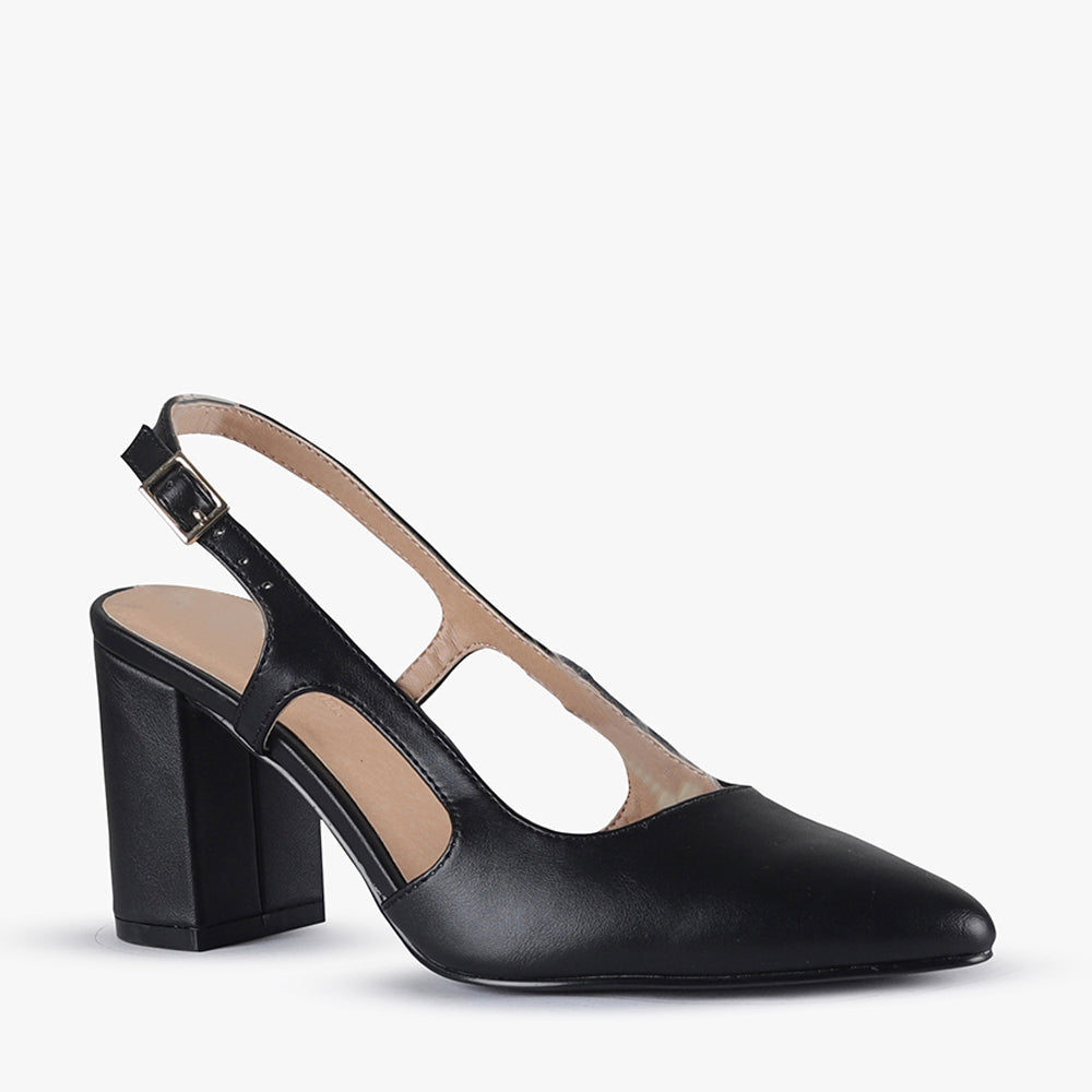 Vero is a sling-back block heel.