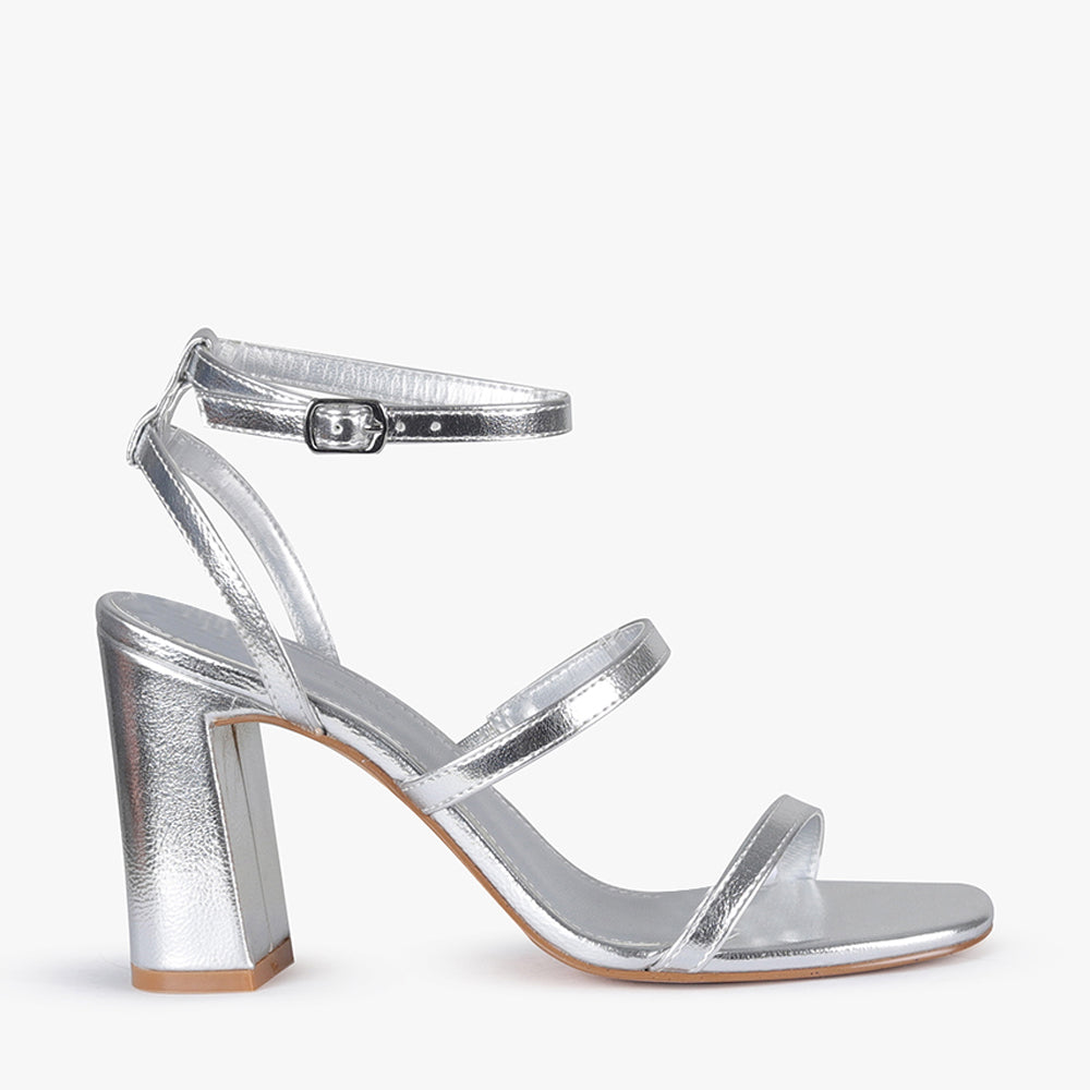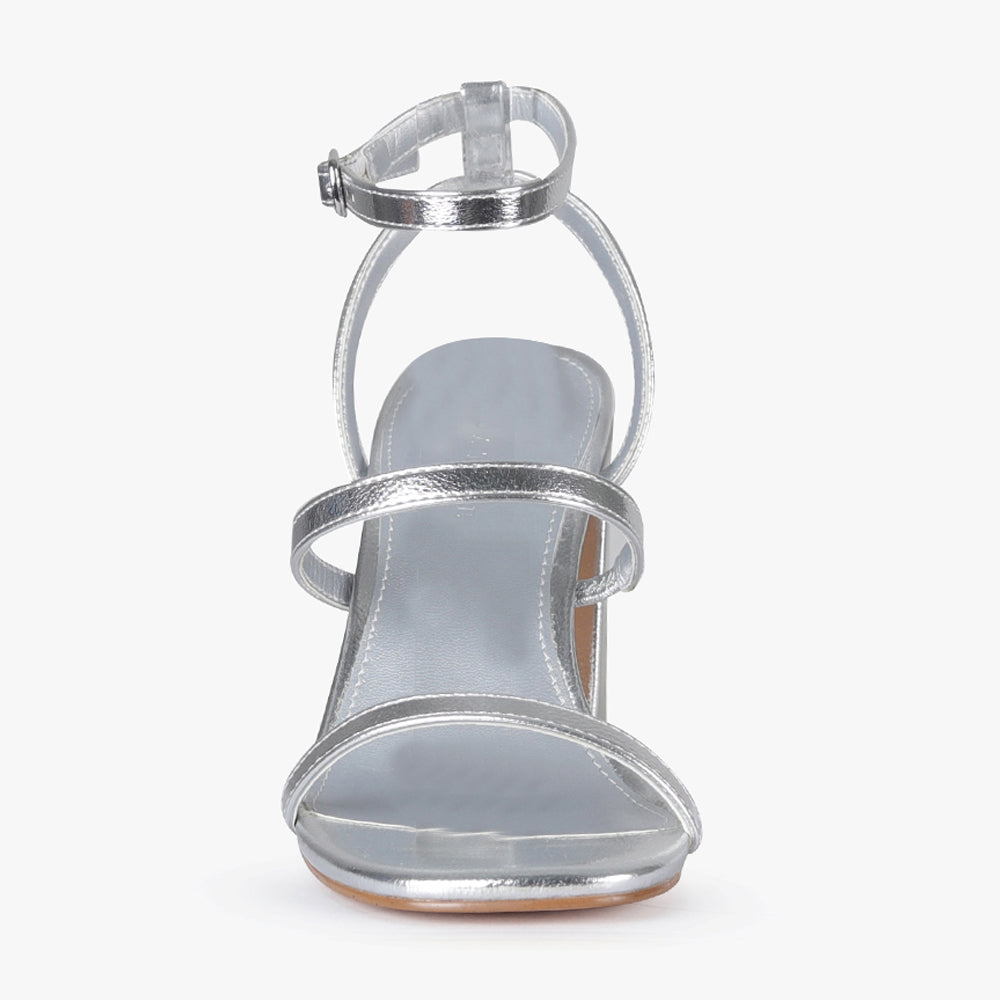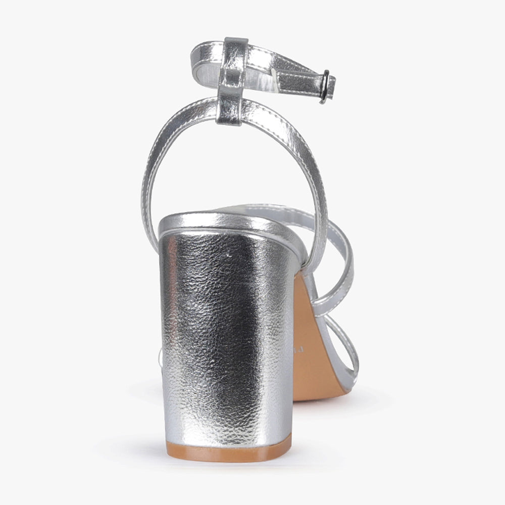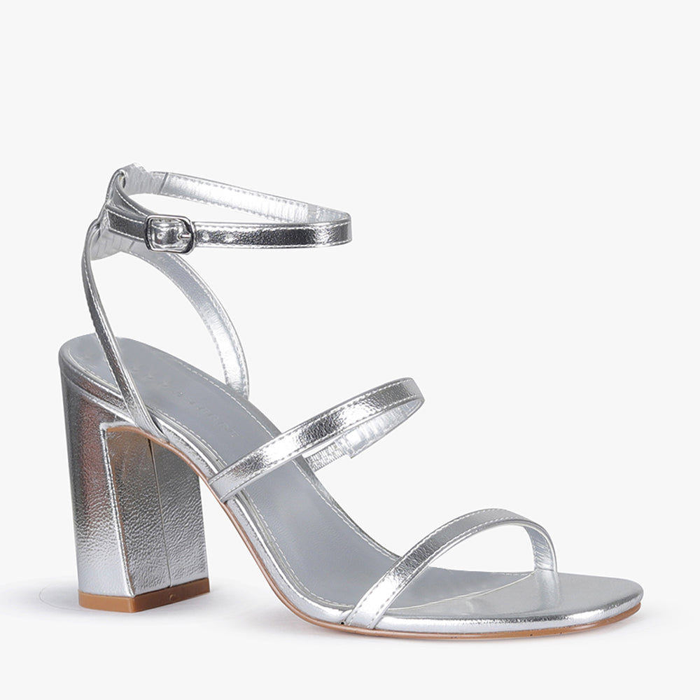 Featuring two delicate straps, one across the toe and one sitting across the vamp. The adjustable open-quarter ankle strap ensures the perfect comfortable fit . A subtle statement heel, that offers comfort without sacrificing style. Dance the night away in your Zaki heels by Pied A Terre.